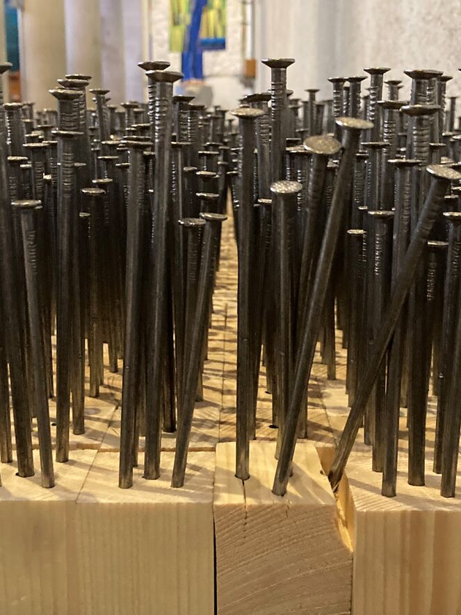 Der Anfang ist gemacht. 2800 Nägel zur Erinnerung an die Corona Toten sind eingeschlagen. Am Ende sollen es 9000 sein. Mit dem Nagelprojekt möchten wir die Verstorbenen würdigen. In verschiedenen Gottesdiensten wollen wir an sie denken und neue Hoffnung schöpfen.