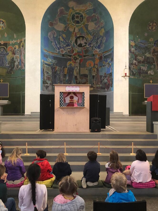 Am Freitagnachmittag versammelten sich in der Kirche Familien unserer Pfarrei um sich bei einem Kasperlispiel für die Karwoche einzustimmen.