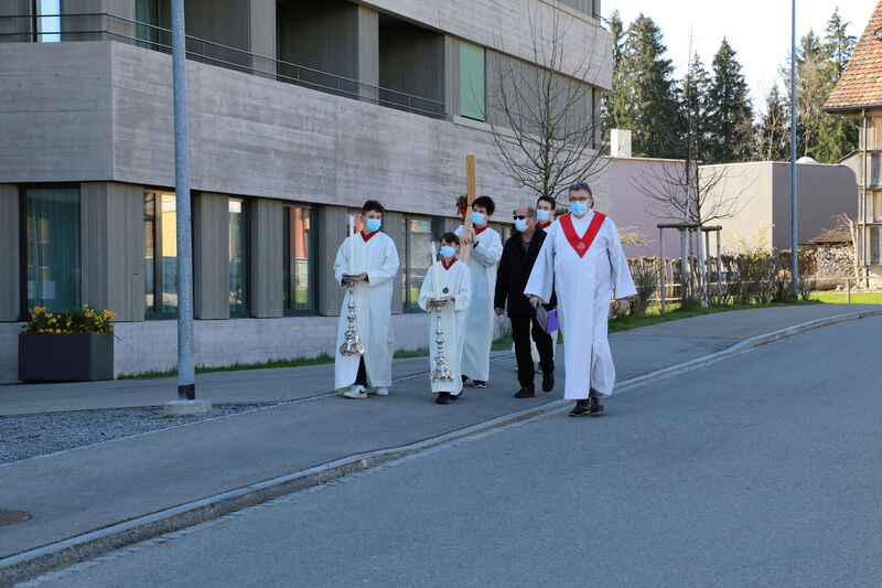 Am Sonntag 28. März 2021 fand die Palmweihe beim Senevita Oberhalden statt, danach die Prozession zur Kirche.