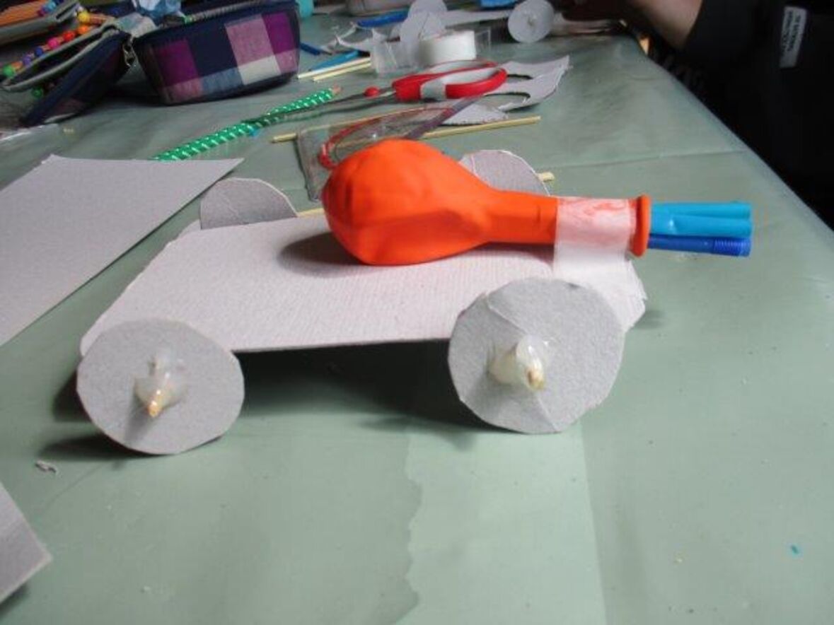 Später haben wir mit Karton, Röhrli, Schaschlikspiessen und einem Luftballon ein eigenes Auto gebastelt, welches wir dann im Gang versuchten zum Laufen zu bringen. Doch ganz so einfach ist es doch nicht, wie es sich angehört hat – so müssen wir wohl morgen weiterüben ????!