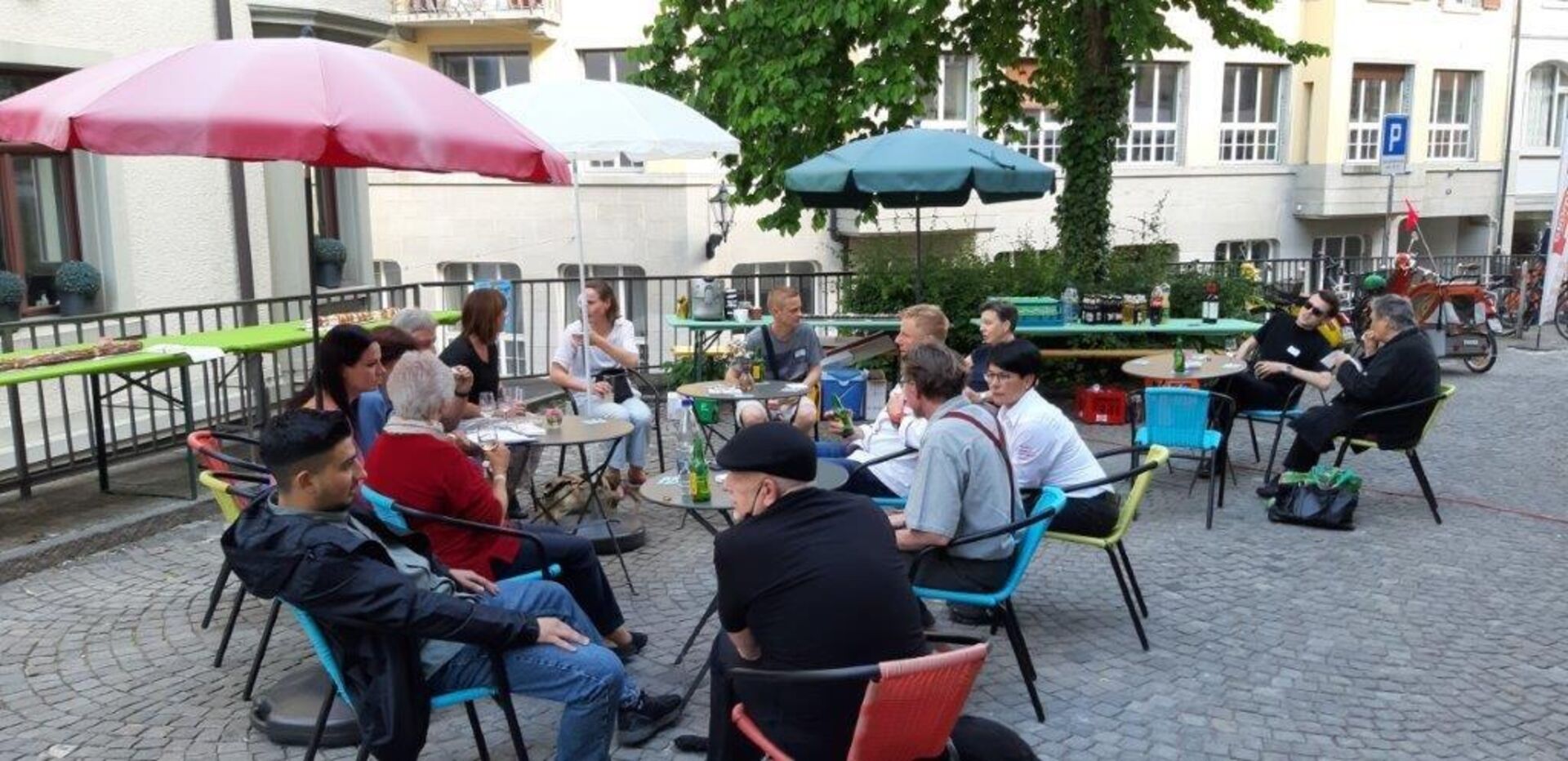 Die Bewohner und Bewohnerinen, Mitarbeitende und Anstösser vom St. Mangen Quartier trafen sich in gemütlicher Runde um auszutauschen und Gemeinschaft zu pflegen.