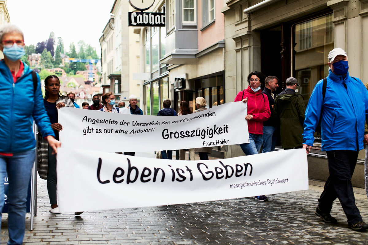 Am 5./6. Juni wurden im Rahmen der Aktion «Beim Namen nennen» der über 44'000 Menschen gedacht, die seit 1993 bei der Flucht nach Europa ums Leben gekommen sind. Ihre Namen wurden während 24 Stunden in der Kirche St.Laurenzen verlesen. Unzählige Freiwillige schrieben die Namen auf schmale Stoffstreifen, welche an der Aussenfassade der Kirche aufgehängt wurden.