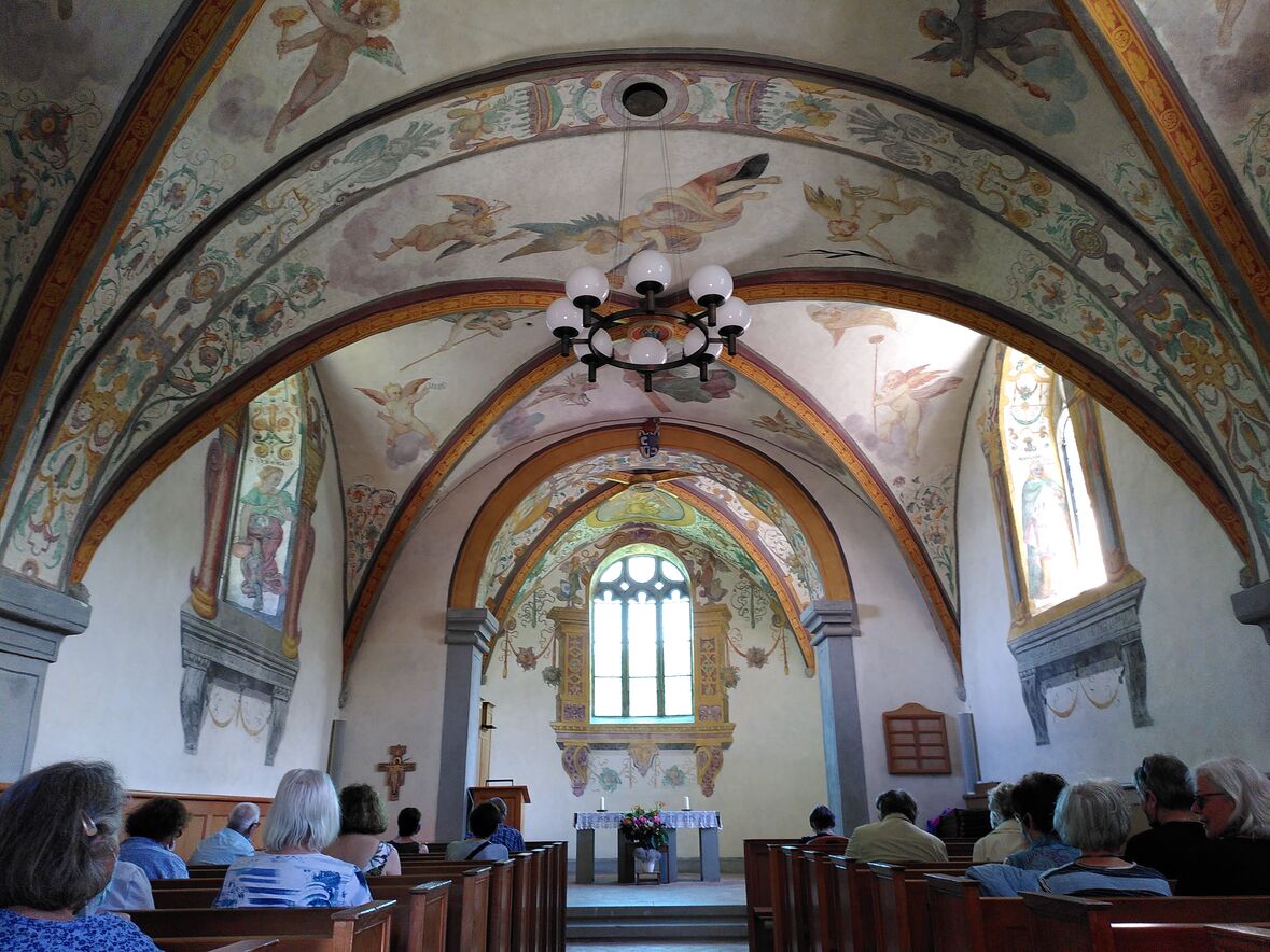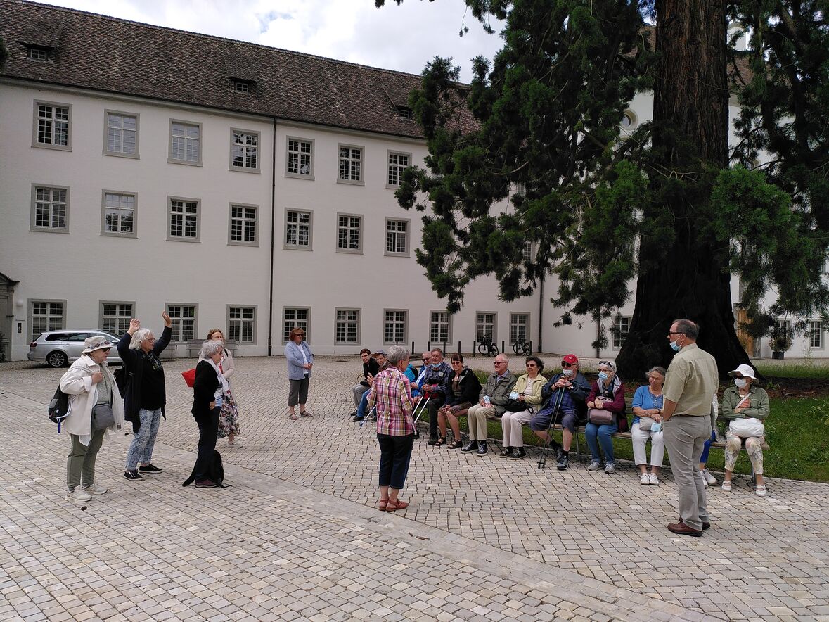Wir reisten mit dem Car durch das malerische Zürcher Weinland zur idyllischen Klosterinsel Rheinau. Die Führung durch die Klosterkirche Rheinau war sehr spannend und das Mittagessen im Restaurant Klostergarten köstlich. In der Kirche «Spitz» in Rheinau konnten wir in einer Besinnung auch unsere Seelen nähren. Wir schlenderten dem Rhein entlang und genossen die wunderbare, stille Landschaft. Die «Wetterfee» war uns grösstenteils ganz gut gesinnt. Insgesamt war der Seniorenausflug eine grosse Freude und für viele eine tolle Abwechslung.