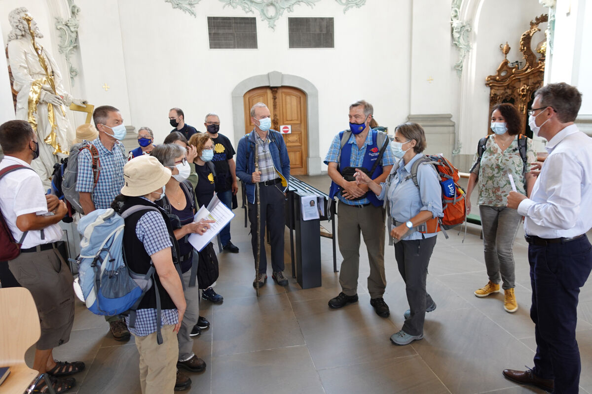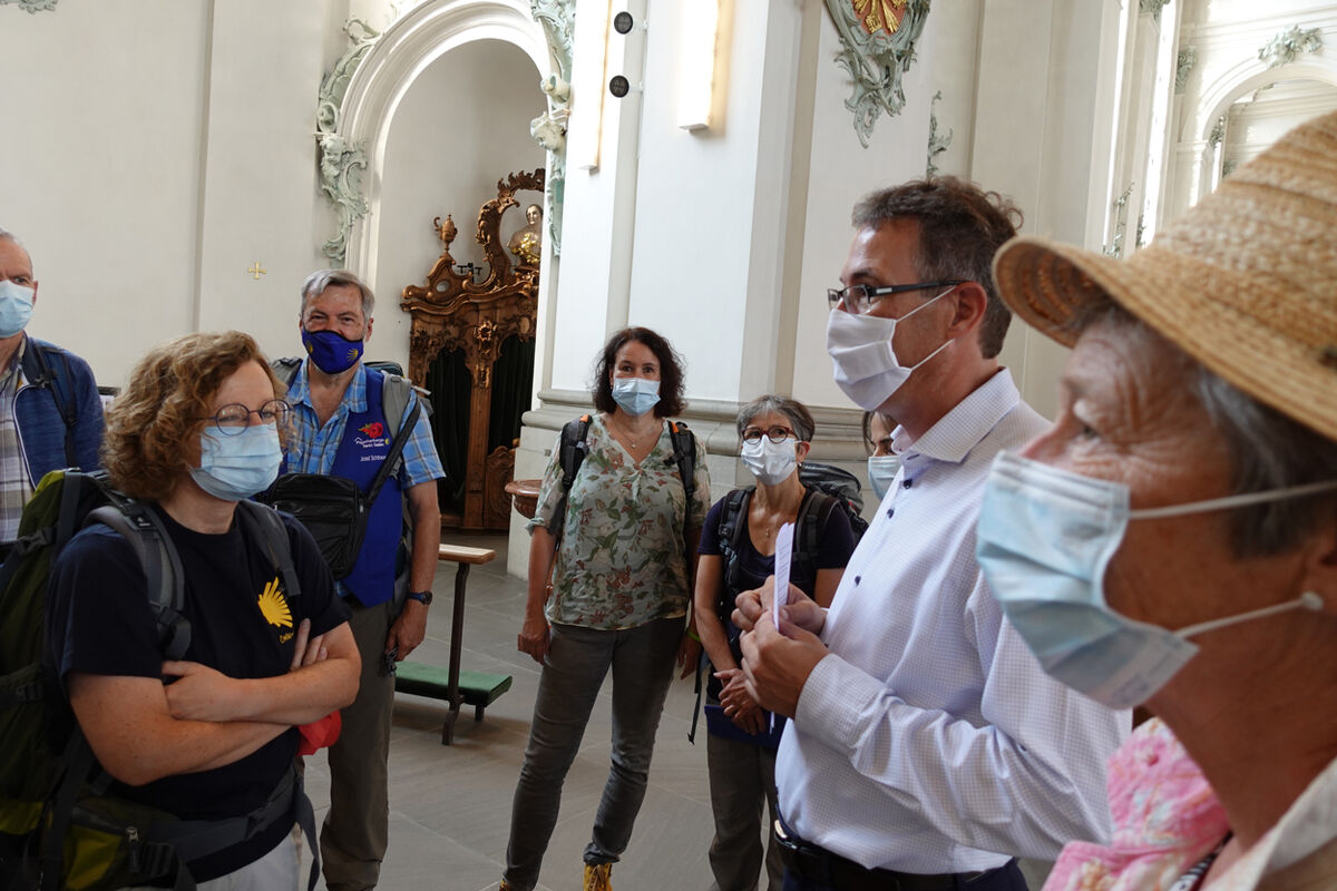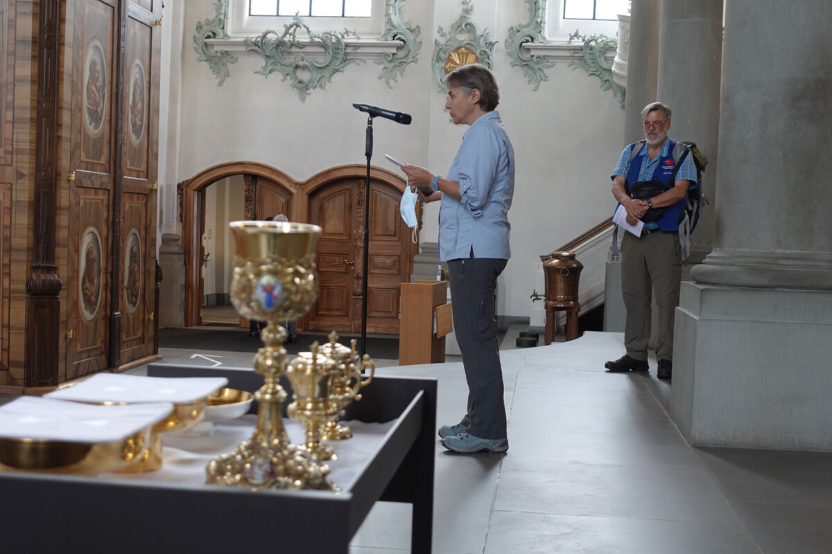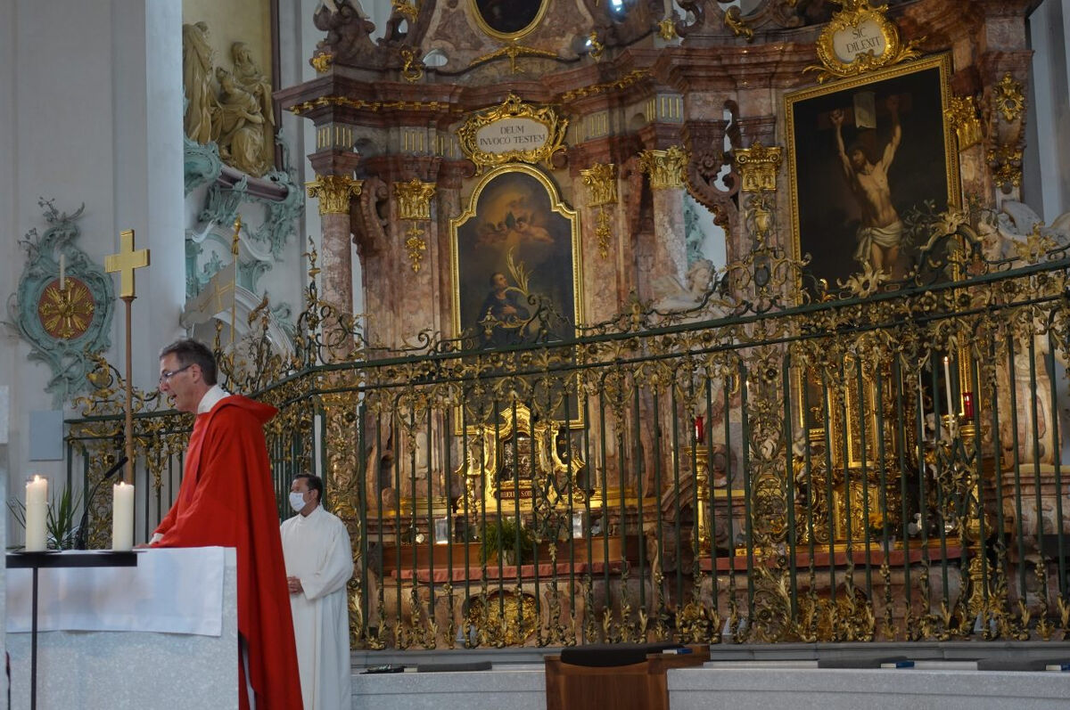Unter den vielen Gottesdienstbesuchenden befanden sich zahlreiche Pilgerinnen und Pilger der ganzen Schweiz. Ausser der Dommusik mit den Dombläsern gestaltete auch eine Gruppe von Pilgerinnen und Pilger des Vereins ‘Pilgerherberge Sankt Gallen’ die Feier mit. Die Festpredigt hielt Dompfarrer Beat Grögli, der auch einst nach Santiago pilgerte.