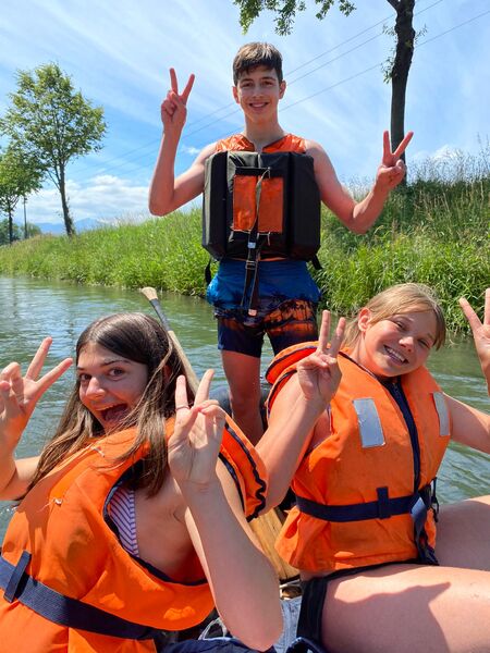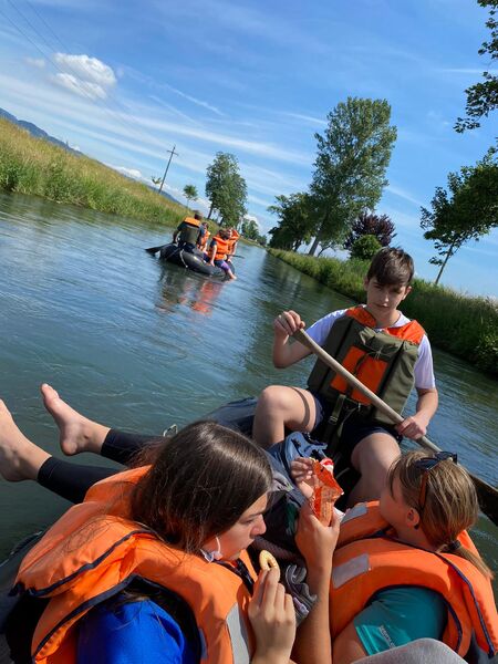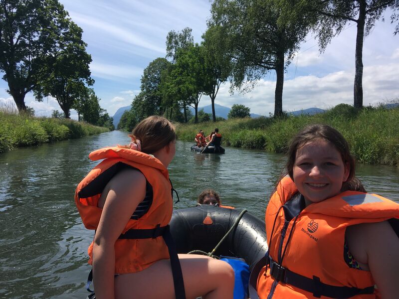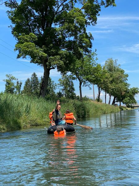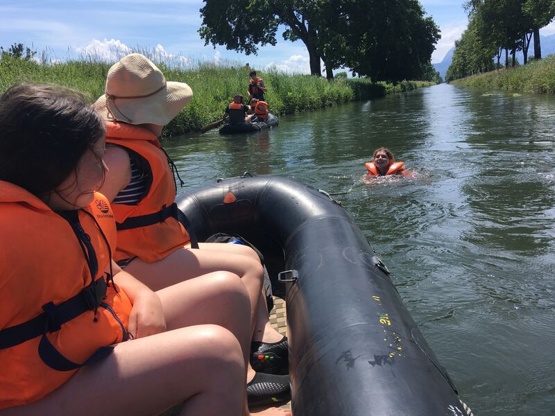 Einen der wenigen Sommertage, der diesen Namen auch verdient hat, erwischten wir für unsere Gummiboottour auf dem Binnenkanal. Heiss wars, so dass es gar den einen oder andern kleinen Sonnenbrand gab, stimmig wars und chillig wars. Nach ein paar Stunden genüsslicher Fahrt auf dem Wasser, auch mit Baden und Plantschen, liessen wir am Ende der Tour unsere Seelen in der Badi in St.Margrethen baumeln und stärkten uns mit einem herzhaften Nachtessen.