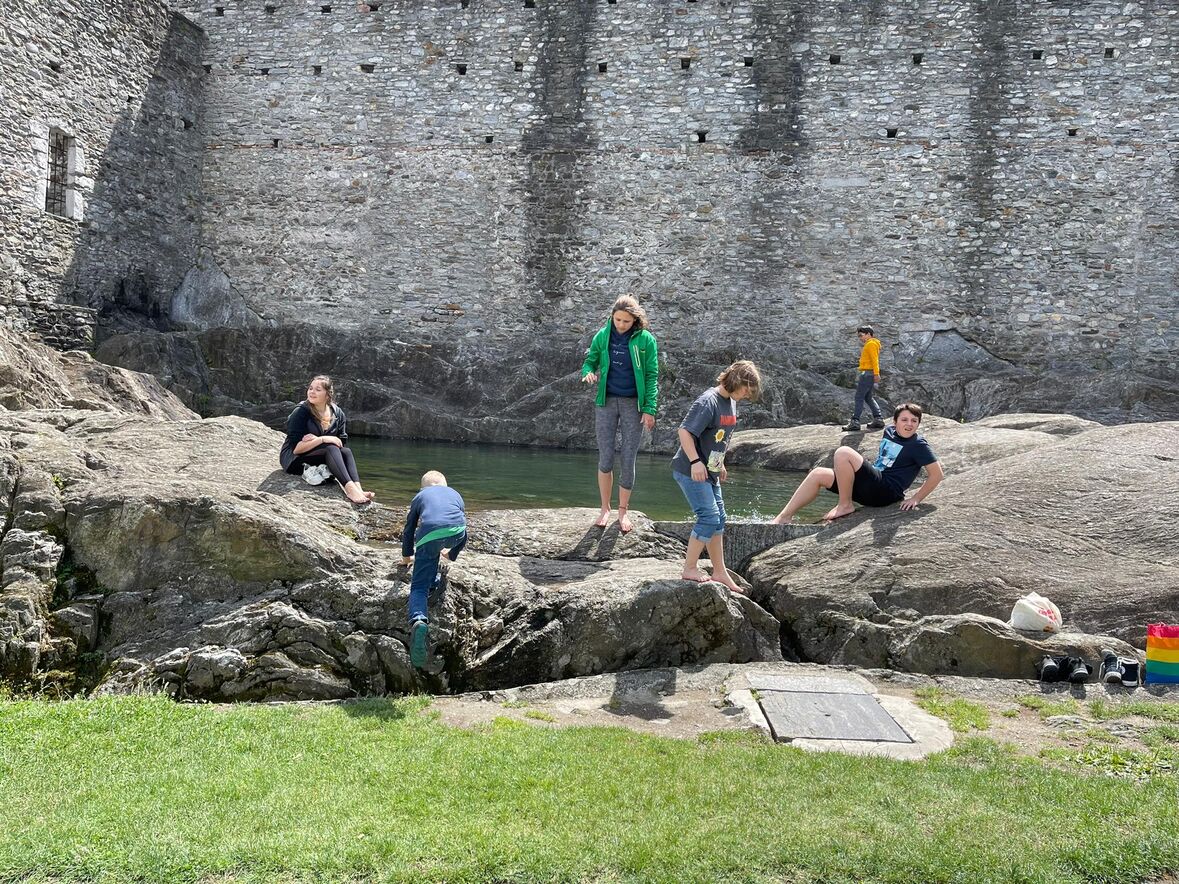 Am Mittwoch ging es nach Bellinzona, eine feine Pizza danach und auf geht’s zum Castel Grande. Oben angekommen genossen wir die herrliche Aussicht die man über Bellinzona hat, begutachteten die wunderschöne Burg und machten eine kleine Pause über der Skyline von Bellinzona. Um das Lager gebürtig abzuschließen richteten uns Laurel, Ylva und Paula ein 5 Gänge-Menu an. Es gab Tortilla Chips, Bruscetta, Fajitas und als Krönung zum Schluss eine feine Torte. Mit vollem Magen schrieben wir uns gegenseitig Kärtchen mit positiven Feedbacks oder Wünschen, welche wir uns auf den Weg gaben und schauten uns in einer Diashow die Bilder der letzten Tage an.