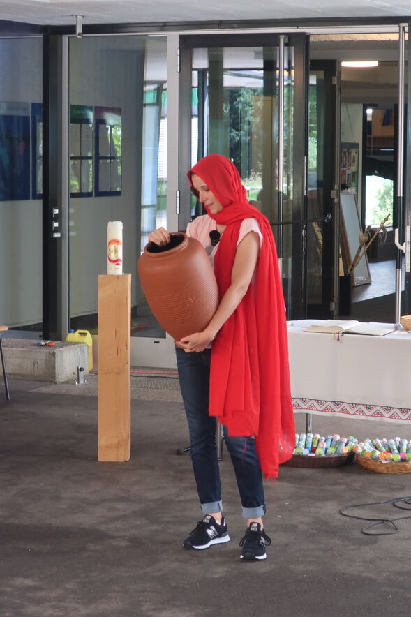 Wenn nach den Ferien das neue Schuljahr beginnt, dann ist das auch immer etwas Spannendes: Altes lässt man los und Neues beginnt. Wie die Frau in der Bibel-Geschichte vom Jakobsbrunnen so haben auch wir in diesem Gottesdienst Altes im Brunnen losgelassen und unsere Hoffnungen auf das Neue als Seifenblasen gen Himmel aufsteigen lassen. Mit unseren Hoffnungen konnten wir unser neues Schuljahr segnen.
