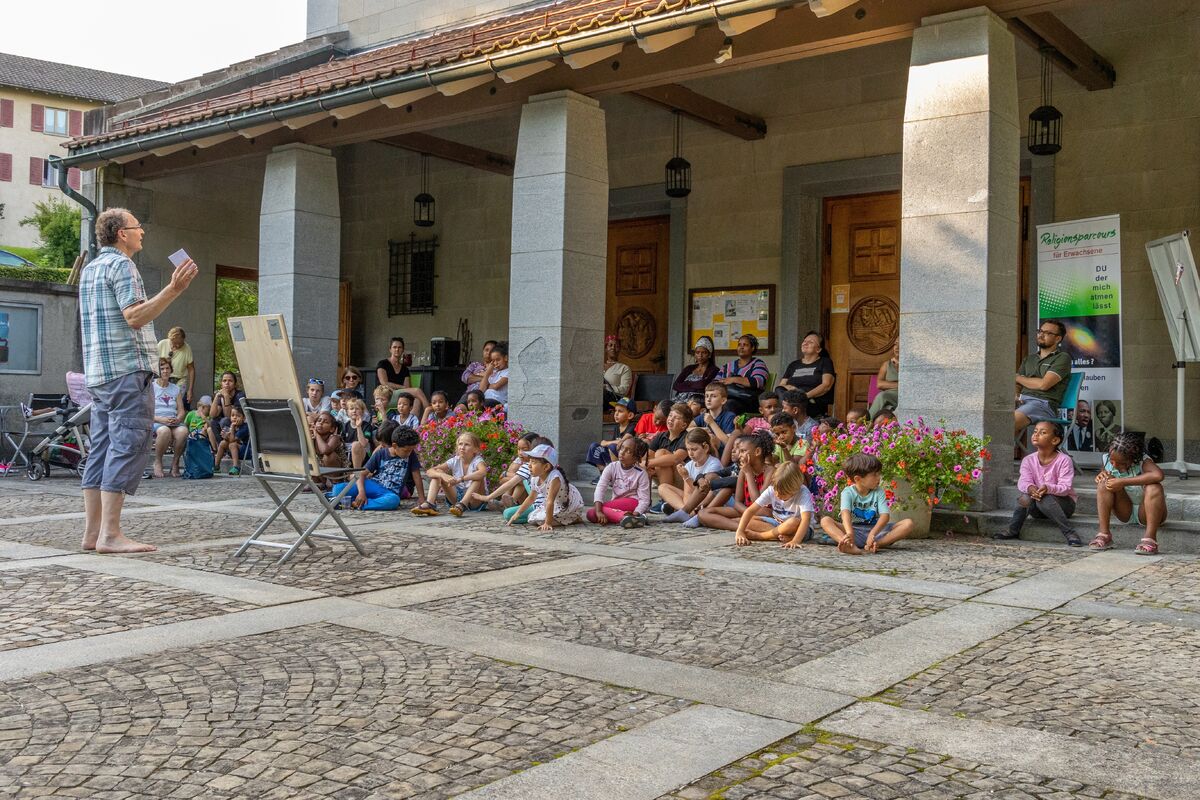 Die erste Bible Bungee Woche war ein voller Erfolg. 200 Kinder hörten Geschichten aus der Bibel. 20 Jugendliche besuchten den Religionsparcours und 70 Eltern am Abend die gemeinsame Abschlussgeschichte.