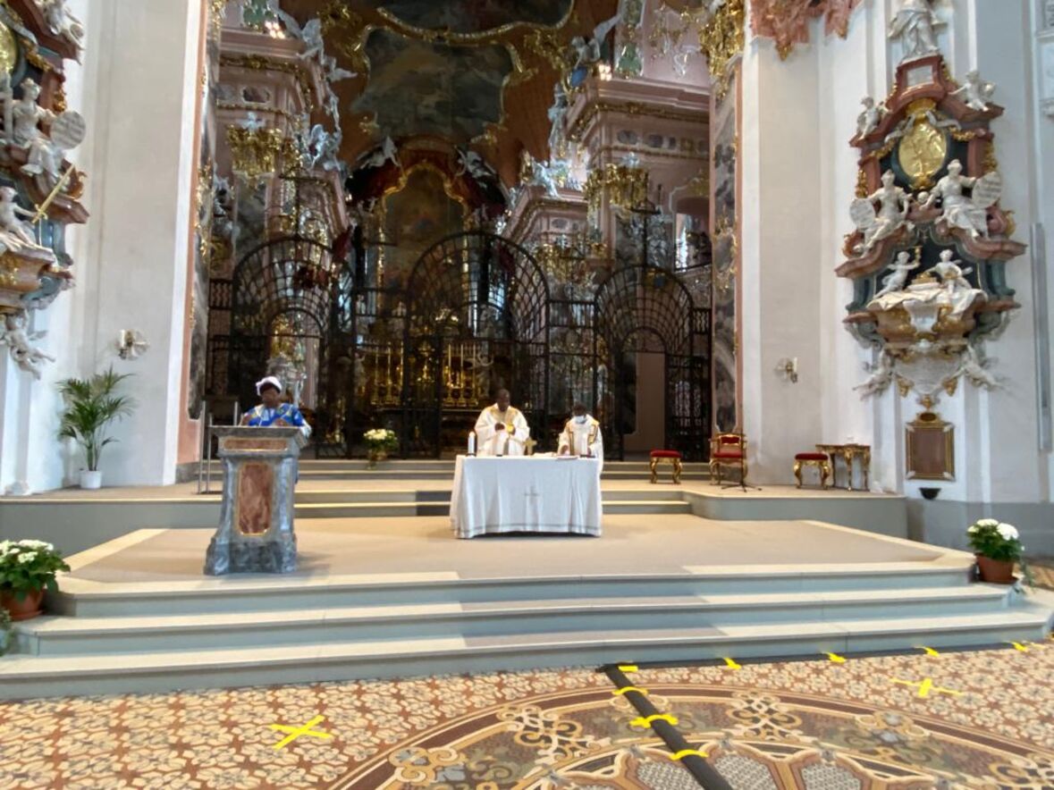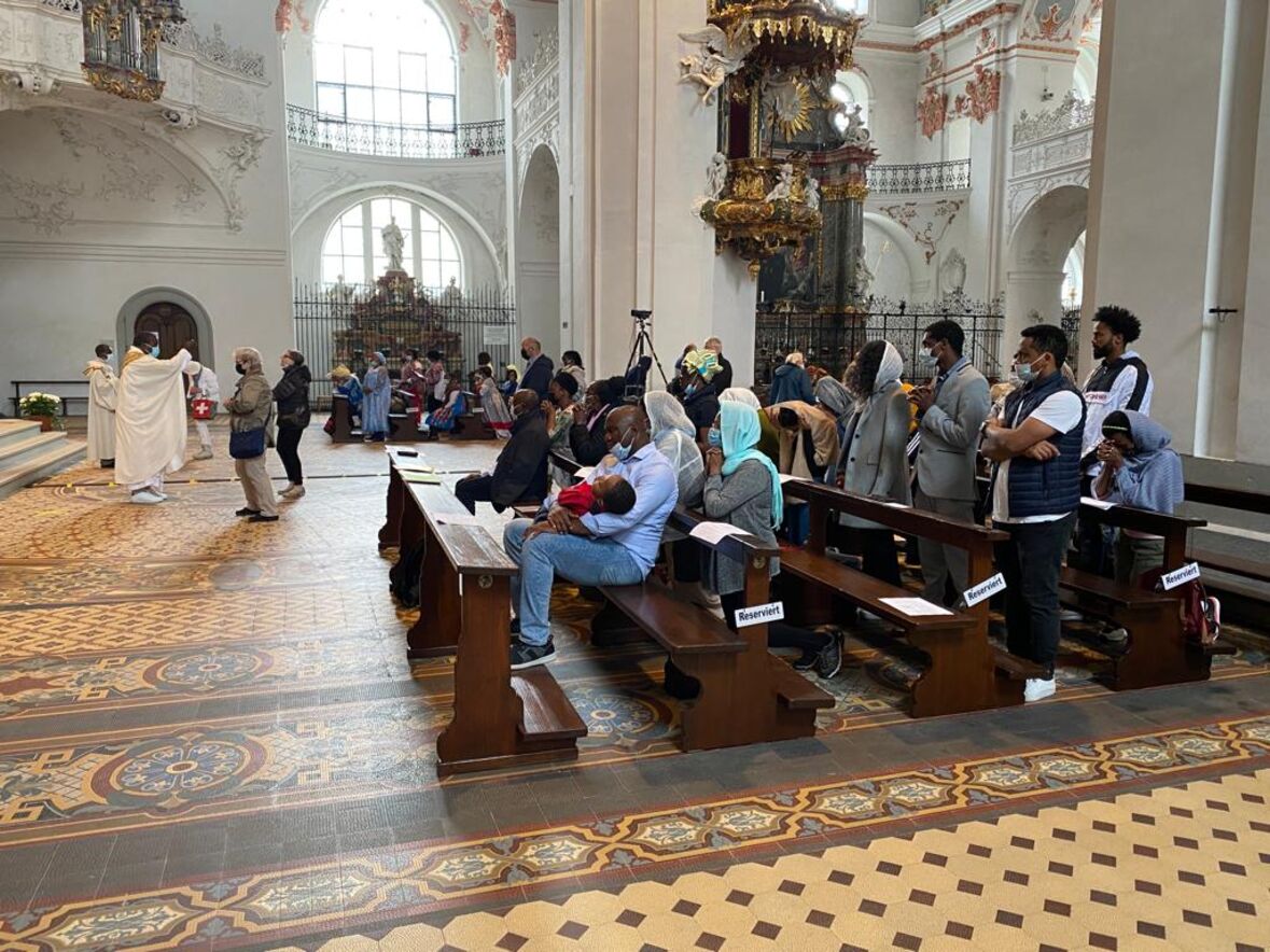 Seit bald zehn Jahren treffen sich Afrikaner*innen, ursprünglich aus der Deutschschweiz aber mittlerweile aus der ganzen Schweiz, zusammen mit ihren Freunden und Freundinnen und Bekannten jedes Jahr am letzten Samstag im Monat August zu einer Wallfahrt zur Schwarzen Madonna in der Klosterkirche Einsiedeln.