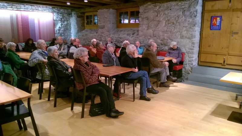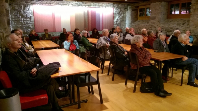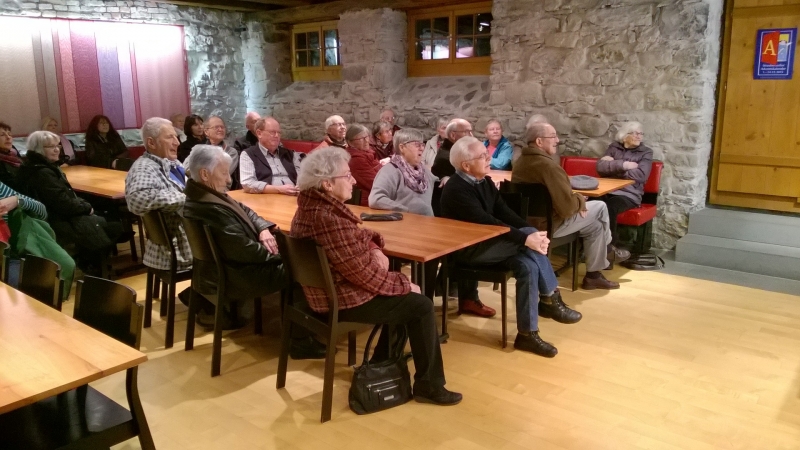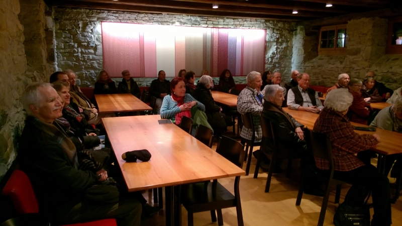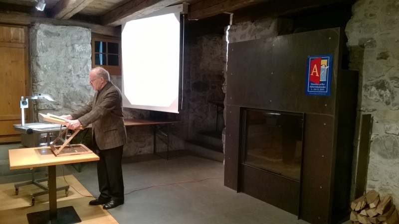 Das Kloster St. Gallen und sein Landeshofmeister auf der Burg Waldegg lautete der Titel des Vortrags von Ernst Ziegler. Die frühen Besucherinnen und Besucher des Straubenzeller Adventskalenders nahmen die Gelegenheit wahr, das Gebäude und die Ausstellung im Tröckneturm zu besichtigen. Um 19.30 Uhr startete Ernst Ziegler seinen Vortrag im angenehm geheizten Veranstaltungsraum des Tröckneturms. Insgesamt 35 Gäste folgten den, mit viel Humor vorgetragenen Ausführungen zur mittelalterlichen Geschichte St. Gallens. Im Anschluss an diesen Anlass äusserten sich verschiedene Gäste lobend über den Vortrag und die Ambiente.