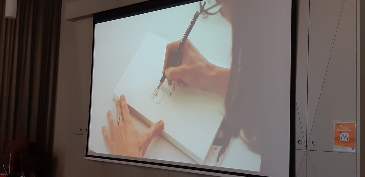 Rund 35 Personen verfolgten fasziniert, wie die bekannte St.Galler Illustratorin und Karikaturistin Corinne Bromundt im Rahmen des ökumenischen Seniorenprogramms im Begegnungszentrum Neudorf life zeichnete. Eine Übertragung auf eine grosse Leinwand machte dies möglich. Wer wollte, konnte sich porträtieren lassen und die Zeichnung dann auch mit nach Hause nehmen. Dabei konnte man feststellen, dass jedes Porträt mit der Nase beginnt - sie liegt in der Mitte des Blattes. Nach wenigen Minuten war das Gesicht nicht nur zu Papier gebracht, sondern strahlte auch etwas Persönliches aus. Hauptorganistin Maja Bösch untermalte das ganze mit heiteren Klängen, und danach gab es noch Kaffee und Kuchen.