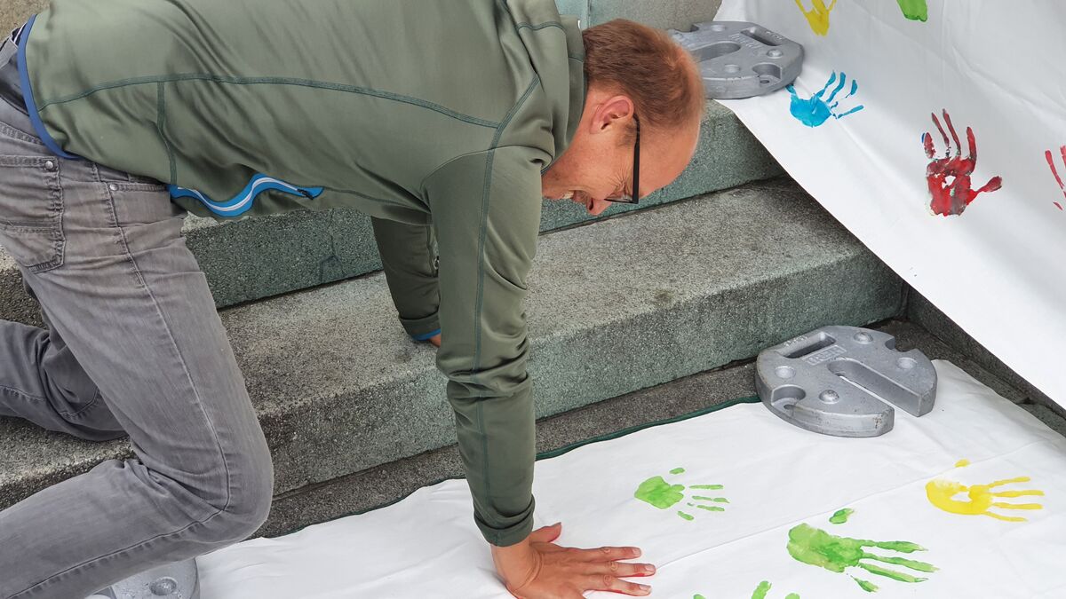 «Mit unserer öffentlichen Aktion auf dem Klosterplatz St.Gallen laden wir die Menschen dazu ein, den eigenen Umgang mit anderen Menschen zu reflektieren und ihnen respektvoll zu begegnen. Mit vielen farbigen Handabdrücken setzen wir gemeinsam ein Zeichen für ein respektvolles und friedliches Miteinander.» erklärt Cityseelsorger Matthias Wenk.