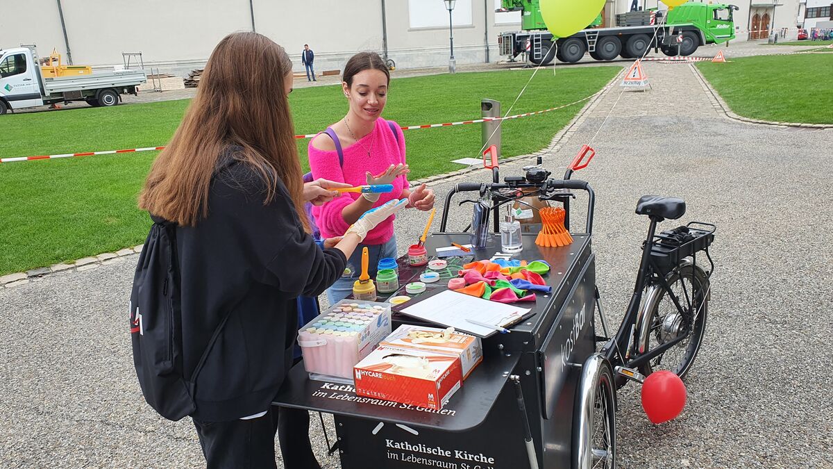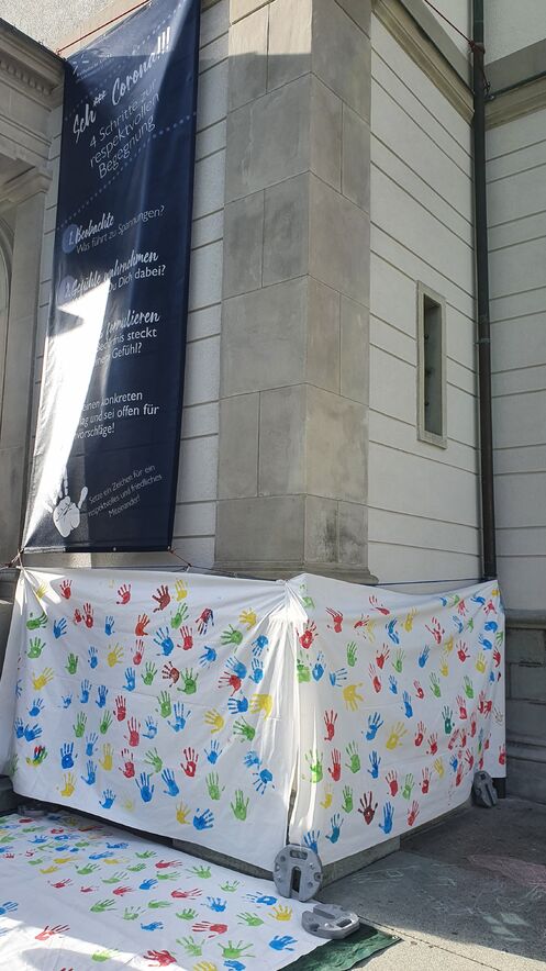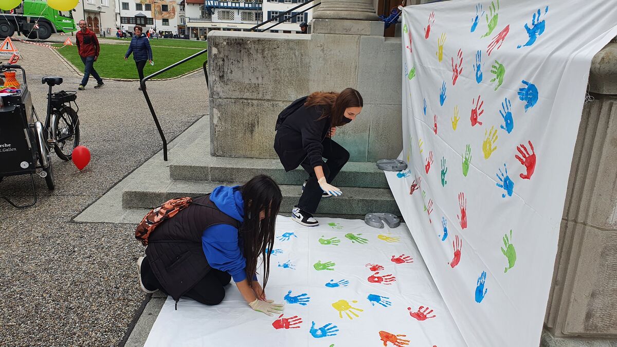 Die Cityseelsorge der katholischen Kirche im Lebensraum St.Gallen hat vom Di. 28. bis Do. 30. September 2021, jeweils von 12 bis 17 Uhr mit einer öffentlichen Aktion auf dem St.Galler Klosterplatz dazu eingeladen, gemeinsam ein Zeichen für ein respektvolles und friedliches Miteinander zu setzten. Über 300 Personen setzten ein solches Zeichen mit ihrem Handabdruck.
