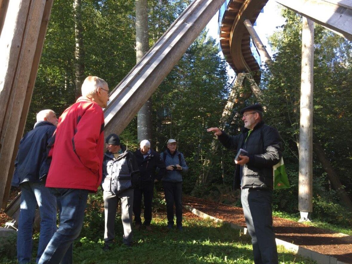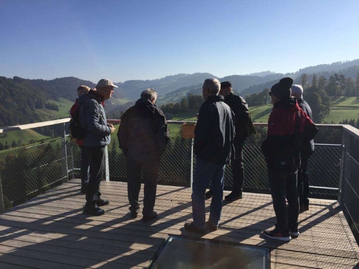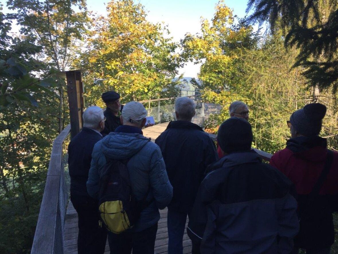 Unter der fachkundigen Führung eines pensionierten Förster habe wir einiges über die Geschichte und die Entstehung des Pfades erfahren. Nicht weniger spannend waren die Ausführung zur Flora beim anschliessend Rundgang über den Pfad. Keiner von den Anwesenden hat vorgängig die Gelegenheit einmal auf der Höhe der Baumkronen durch einen Wald zu gehen. Auch der Ausblick von der Plattform, welche 45 Meter über Grund steht, war beeindruckend.