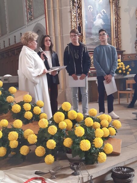 Drei Ministrierende werden von Brigitta Schmid verabschiedet