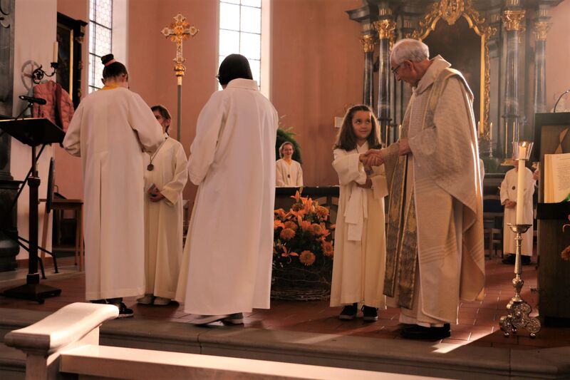 Im Gottesdienst vom Sonntag 21. November 2021 durften wir Sofia Mermigakis und Janina Steiner in die Ministrantenschar aufnehmen - wir freuen uns sehr.