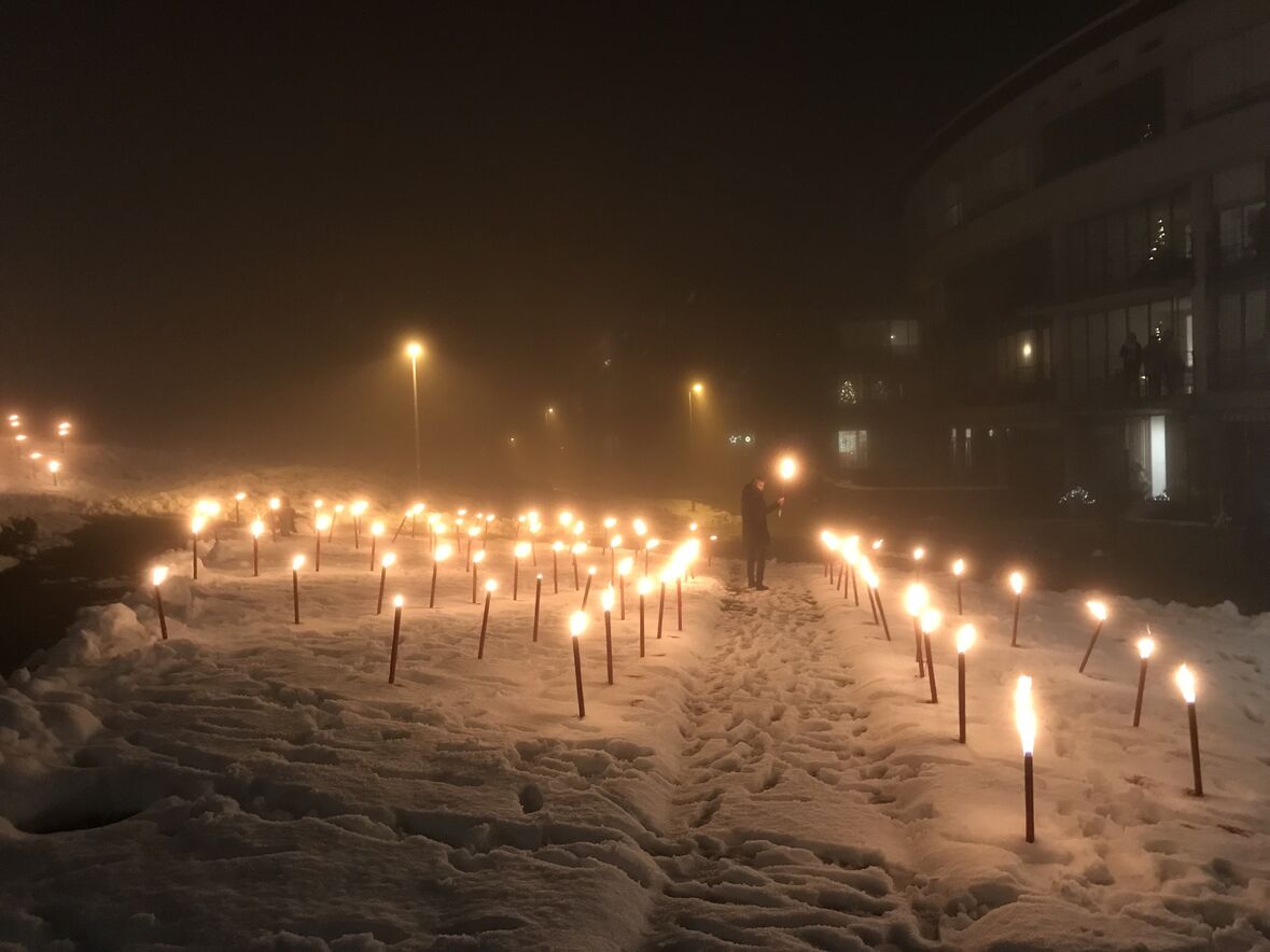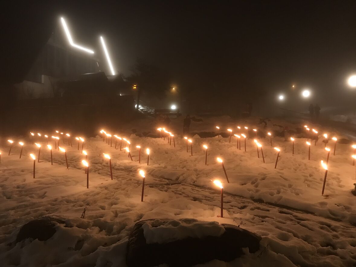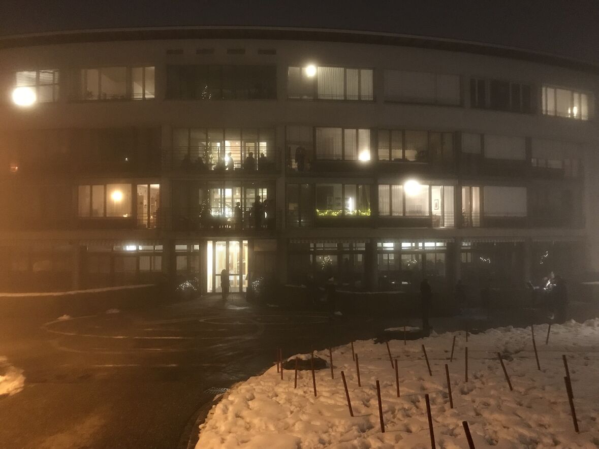 Ein kleines Lichterfest konnten wir vom Team der Ökumenischen Gemeinde Halden und der Pfadi Fontana heute Abend den Bewohner*innen des Betagtenheims Halden schenken. Mit 106 brennenden Fackeln hat die Pfadi einen grossen Stern in den Schnee auf der Wiese zwischen Betagtenheim und Kirche Halden gezeichnet. Anita und Andreas Lauper und Manuela Rechsteiner spielten mit Trompete und Flügelhorn Weihnachtslieder und Pfrn. Andrea Weinhold richtete ein paar einfühlsame Worte an die Bewohner*innen - alles natürlich im Rahmen entsprechender Corona-Regeln. Aus der schweren Situation im Winter 2020 heraus entstand diese Tradition, bei der die Halden dem Betagtenheim das Friedenslicht von Bethlehem übergibt und das Heim ihren Adventsstern für die Kirche.