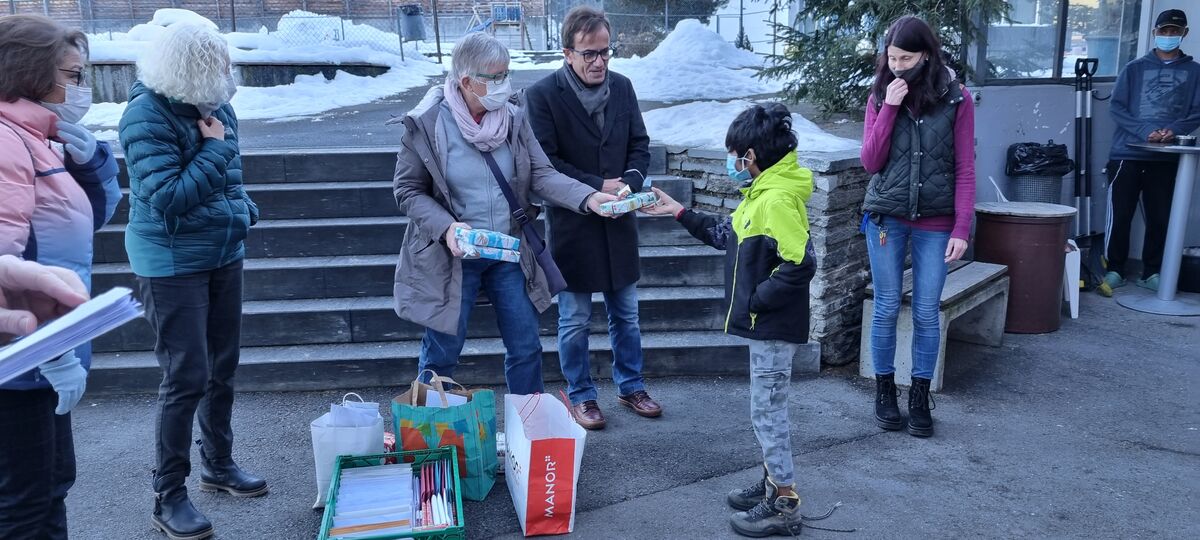 Die Flüchtlings- und Migrationsseelsorge, das Solihaus und das Solinetz nahmen zusammen ca. 300 Couverts mit Schoggi-Tafeln, 20 Franken-Gutscheinen und liebevoll gestalteten Grusskarten freudig entgegen.