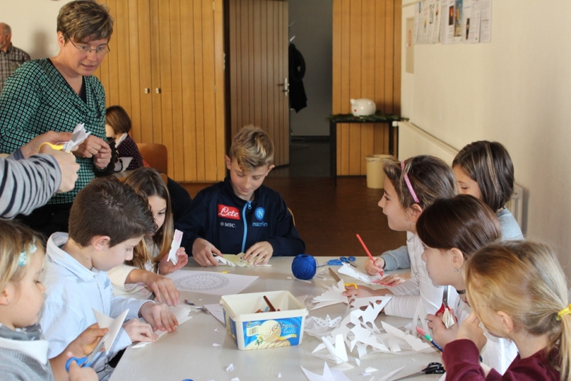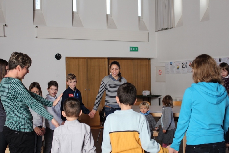 Nach dem gemeinsamen Anfang des Gottesdienstes für die Grossen gehen die Kinder vom Kiga bis zur 3. Klasse in das Pfarreiheim und feiern dort einen kindgemässen Gottesdienst mit Singen, basteln, beten und spielen...