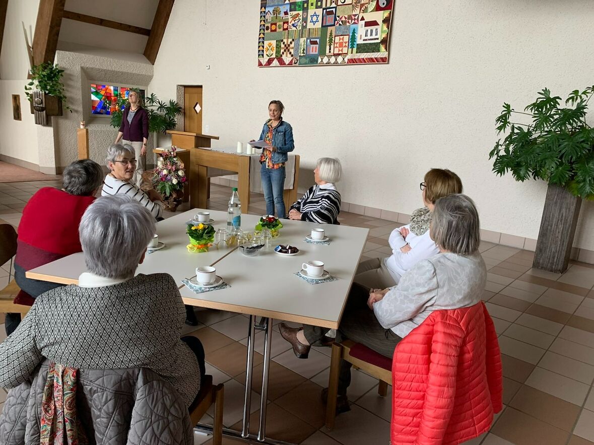 Viel zu lachen gab es in der ökumenischen Kirche Halden: Die Seelsorgerinnen Andrea Weinhold und Petra Mühlhäuser erzählten ihre liebsten Kirchenwitze, Organistin Maja Bösch ergänzte das Programm schwungvoll mit selbst komponierten Orgeltänzen sowie heiteren Volksliedern. Und das regte an zu eigenen humoristischen Beiträgen aus dem Publikum. Bei Kaffee, Berlinern und Fasnachtschüechli klang der Nachmittag gemütlich aus.