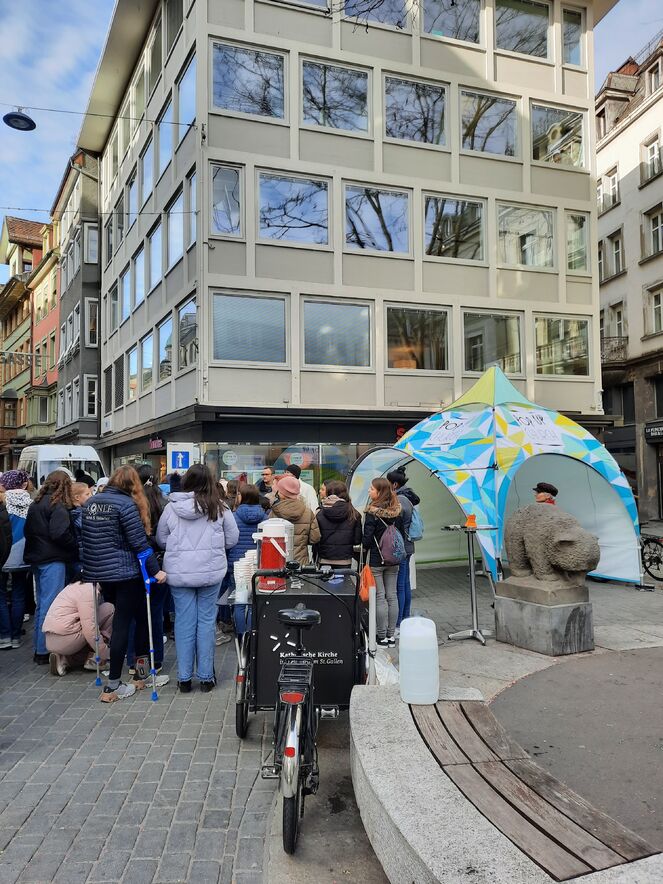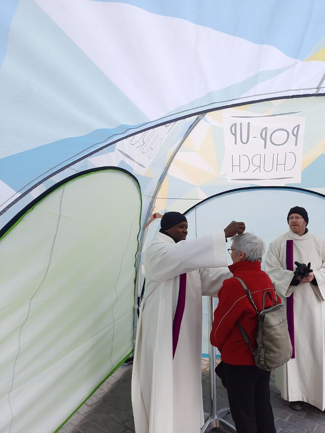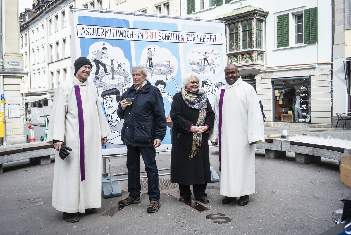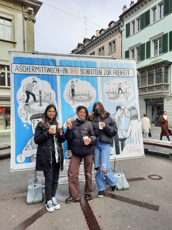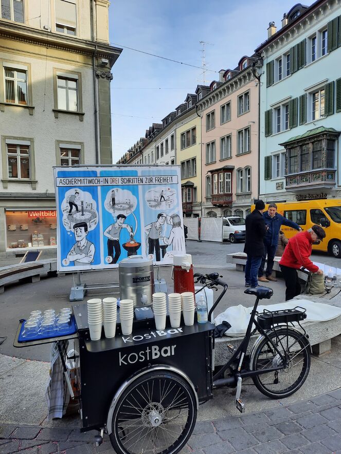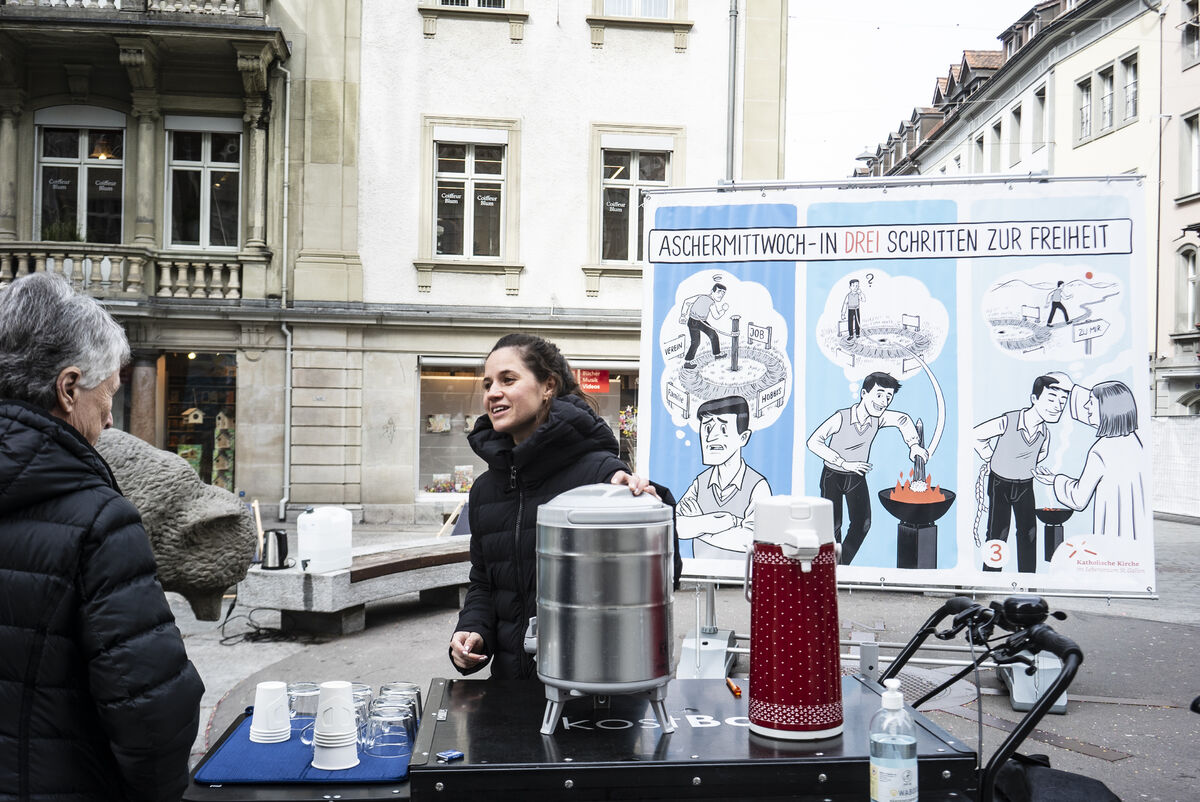 Wir von der Cityseelsorge waren auf dem Bärenplatz präsent und brachten Passantinnen und Passanten die Bedeutung des Aschermittwochs näher und spendeten das Aschenkreuz.