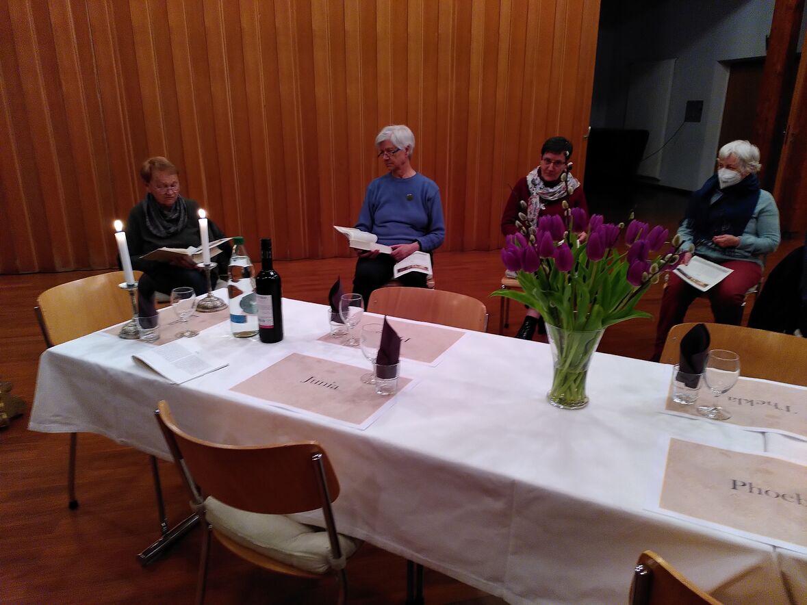 Am internationalen Frauentag setzen wir uns an den Tisch mit acht Amtsträgerinnen der frühen Kirche. Wer waren Junia, Priska und Co.? Angeregt durch das moderne Fresko der Kirche Therwil/BL hören wir ihnen zu und geniessen ein einfaches Mahl. Dabei schürfen wir nach ihrer Bedeutung für uns Frauen und Männer heutzutage.