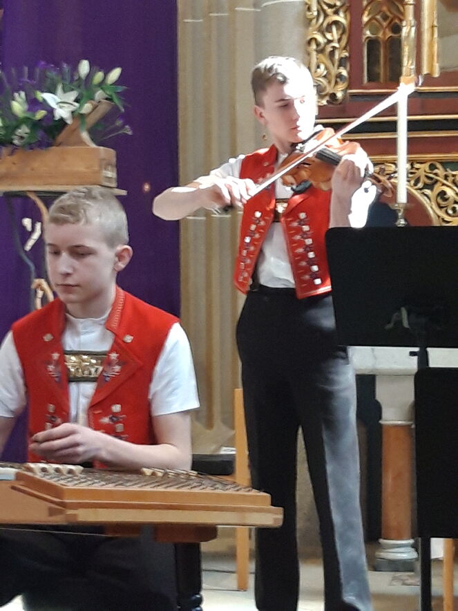 Die Feier wurde gestaltet von Pfarrer Roman Giger, Pfarreileiterin Brigitta Schmid und dem Seelsorger in Ausbildung Ivan Saric und sie wurde musikalisch umrahmt und getragen von der "Striichmusig Dobler" aus dem appenzellischen Weissbad. Die Familienformation überzeugte mit Besinnlichem genauso wie mit lüpfigen Melodien. Sie haben der Feier einen temperamentvollen, stimmigen Rahmen gegeben.