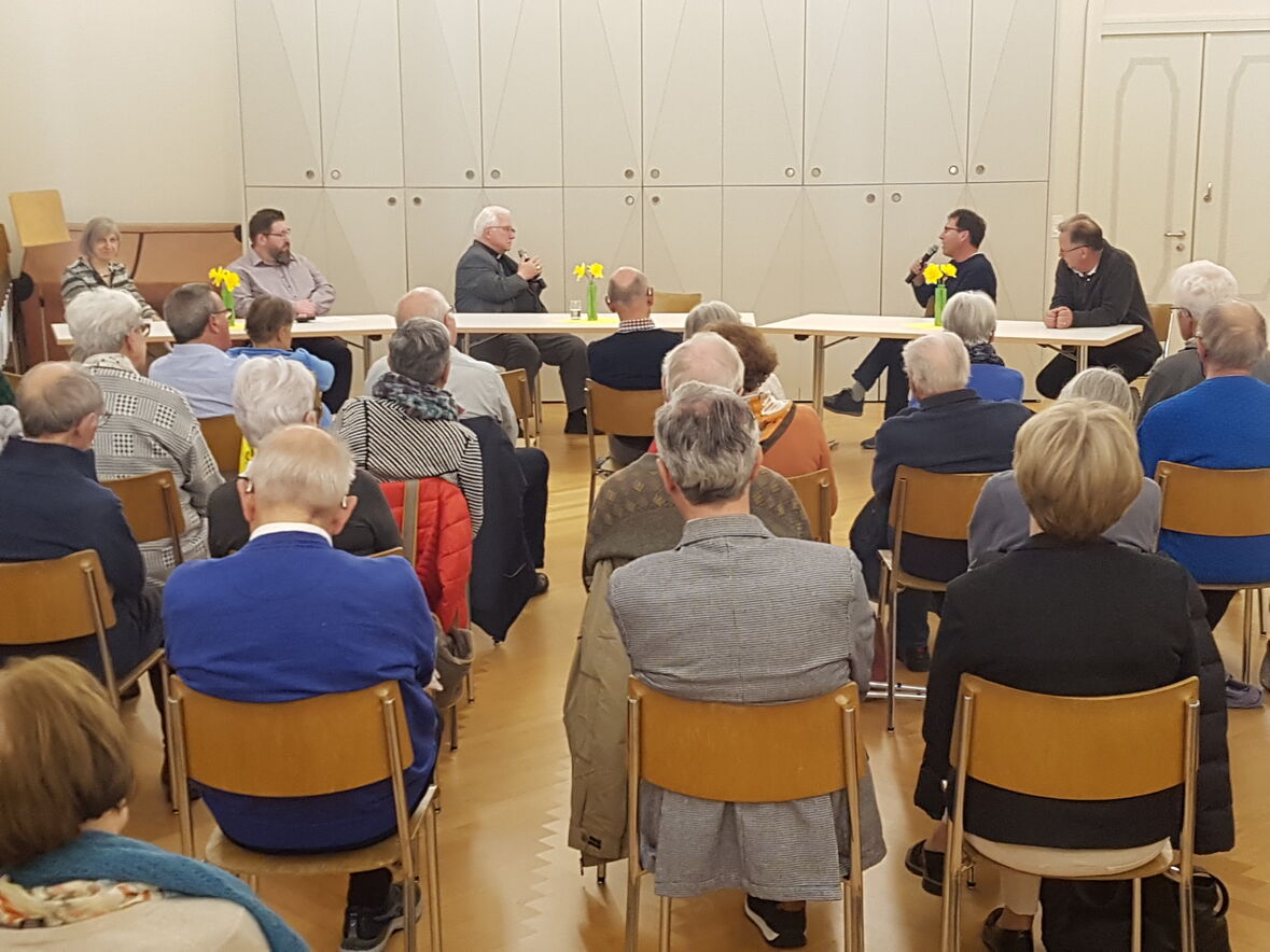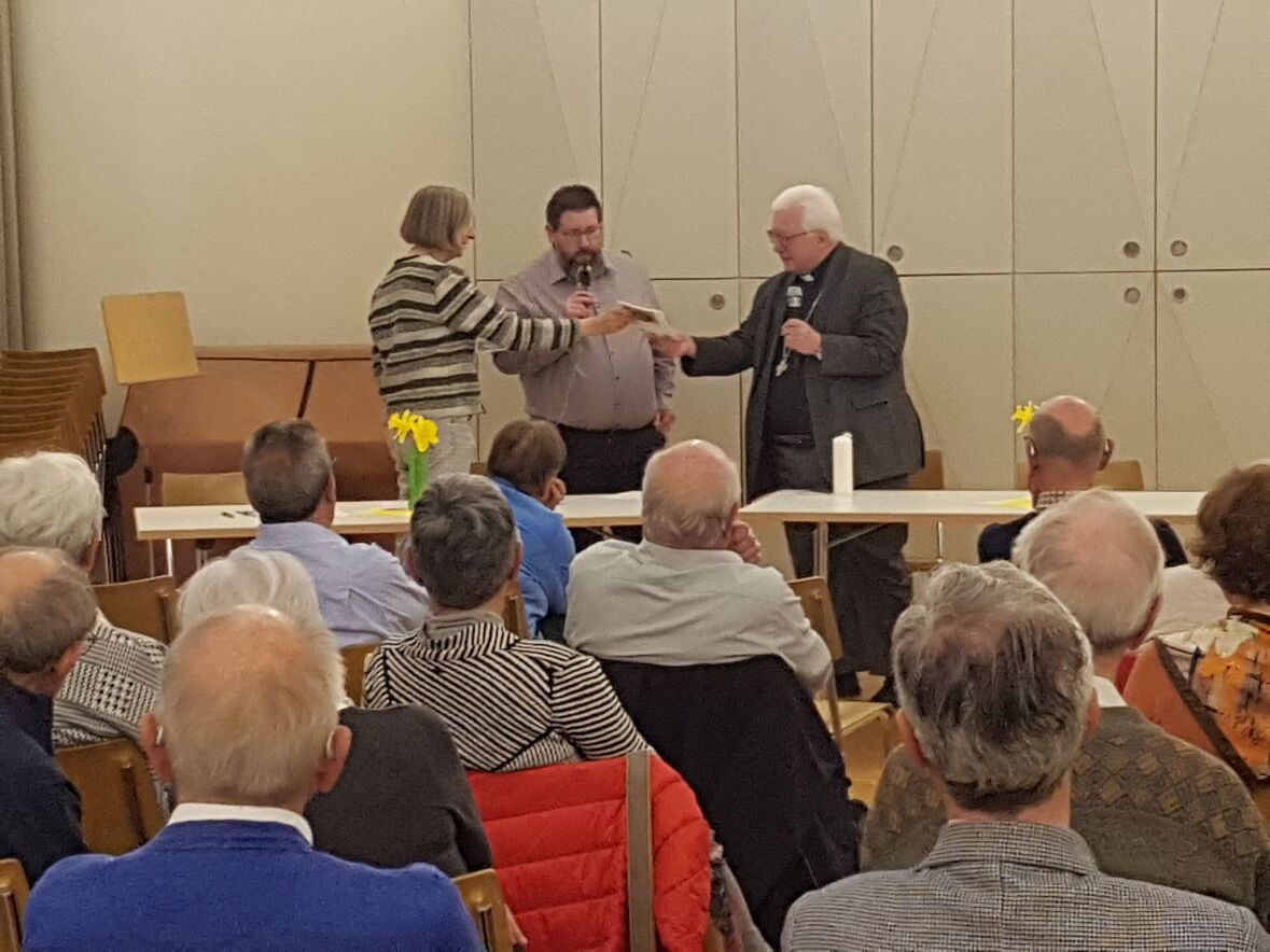 Welche Vision hat der Bischof für das Bistum St.Gallen in 10 Jahren? Mit dieser Frage begann die Begegnung mit Bischof Markus Büchel im Begegnungszentrum Neudorf. Der Pfarreirat hatte eingeladen, anlässlich des 175-Jahr-Jubiläums des Bistums St.Gallen das offene Ohr des Bischofs in Anspruch zu nehmen, mit dem er für den weltweiten synodalen Weg geworben hatte. Er kam und stellte sich anderthalb Stunden lang den Fragen des Publikums: Was sagen Sie zur bald vierjährigen Pfarrvakanz? Zu den vermehrt stattfindenden Wortgottesfeiern in Neudorf und St.Fiden? Wie könnte man mehr junge Leute für die Kirche gewinnen? Und wie lange geht es noch, bis die katholische Kirche auch Frauen weiht? Das Publikum betätigte sich rege und genoss es auch, beim anschliessenden Apéro dem Bischof noch persönlich zu begegnen - und Selbstgebackenes vom Pfarreirat zu geniessen.