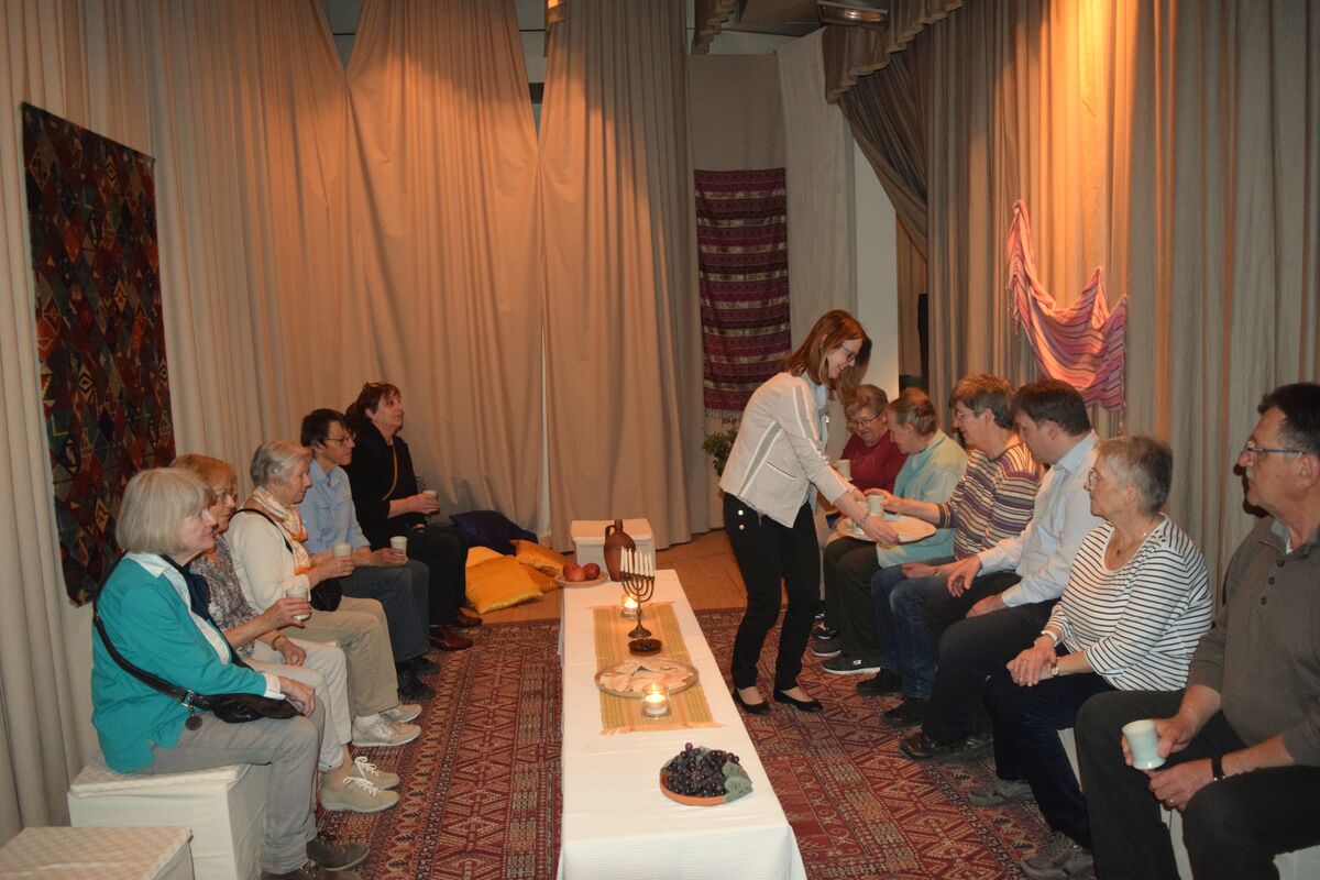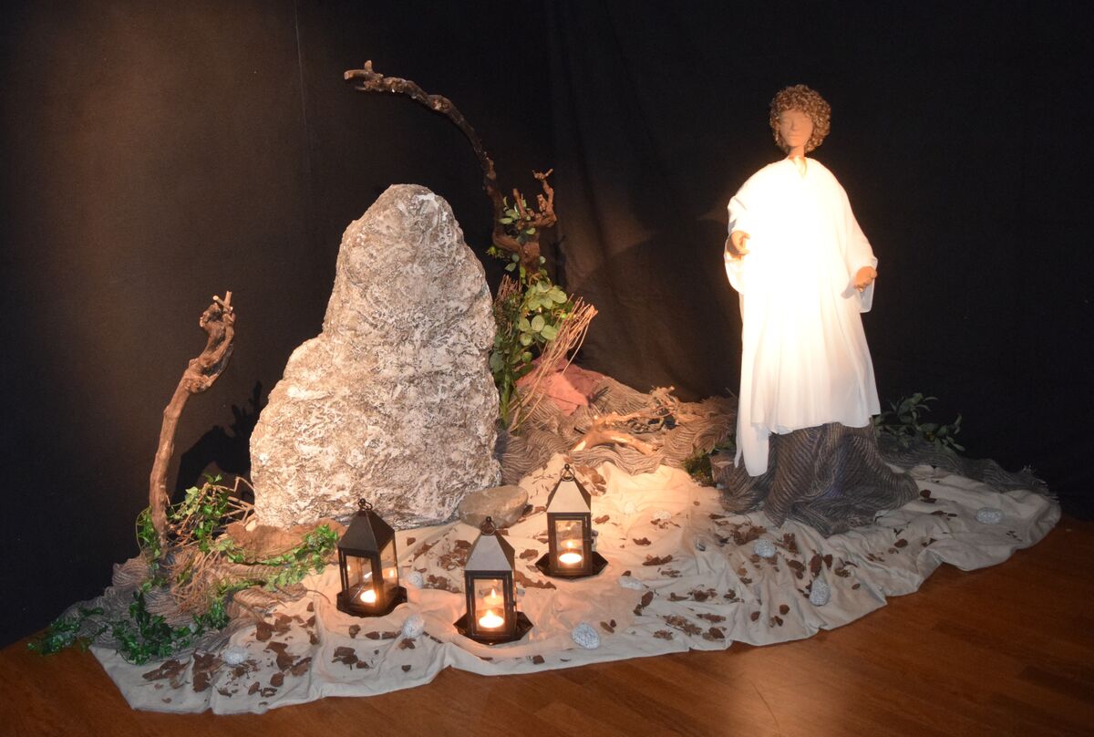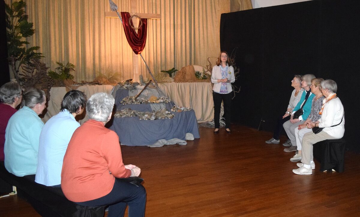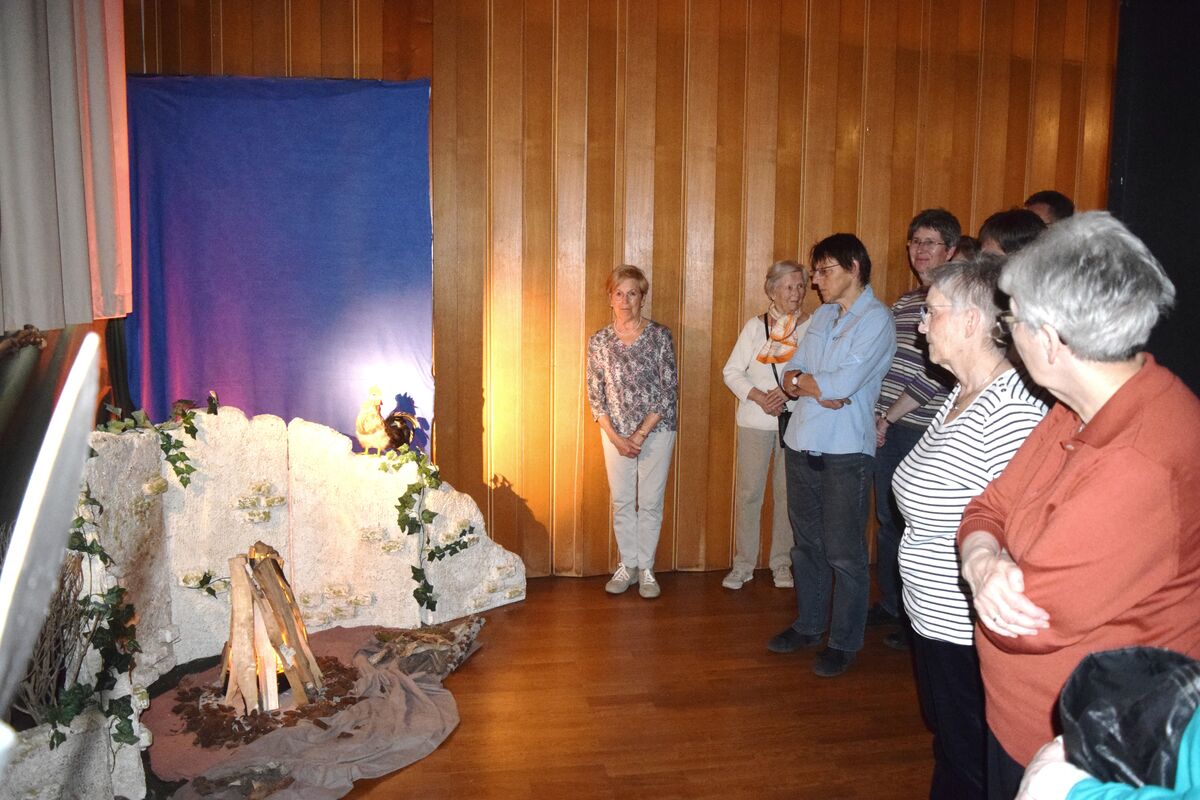 Die Frauengemeinschaft besucht den Ostergarten in St.Fiden. Monika Enz führte uns in die diversen, eindrücklich gestalteten, letzten Lebensstationen von Jesus ein. Fast wähnte man sich in die Zeit Jesu zurückversetzt.