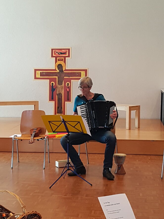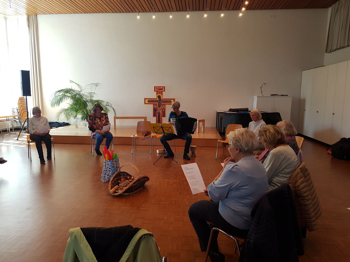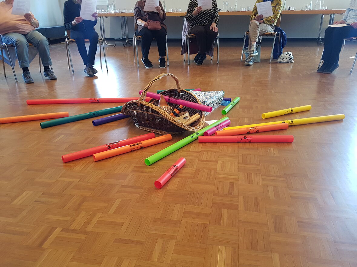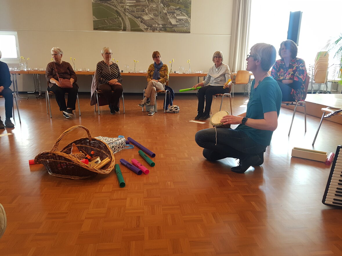 Am 27. April 2022 fand der 60plus Programmnachmittag statt. 12 interessierte Personen fanden sich im Pfarreiheim Winkeln zum gemeinsamen Singen und Musizieren ein. Es wurden bekannte Lieder gesungen, welche von Regula Frehner mit der Handorgel begleitet wurden. Auch hatten die Teilnehmerinnen die Möglichkeit, verschiedene Begleitinstrumente, wie Rasseln, Triangel, Schellenringe oder die speziellen Boomwhackers (farbige Plastikröhren) auszuprobieren. Das gemeinsame Musizieren machte so viel Spass, dass beinahe der gemeinsame Zvieri mit Himbeerschnitte vergessen ging.