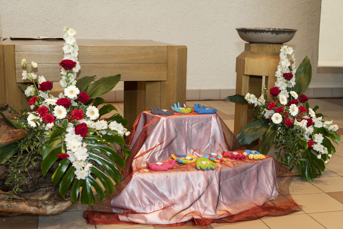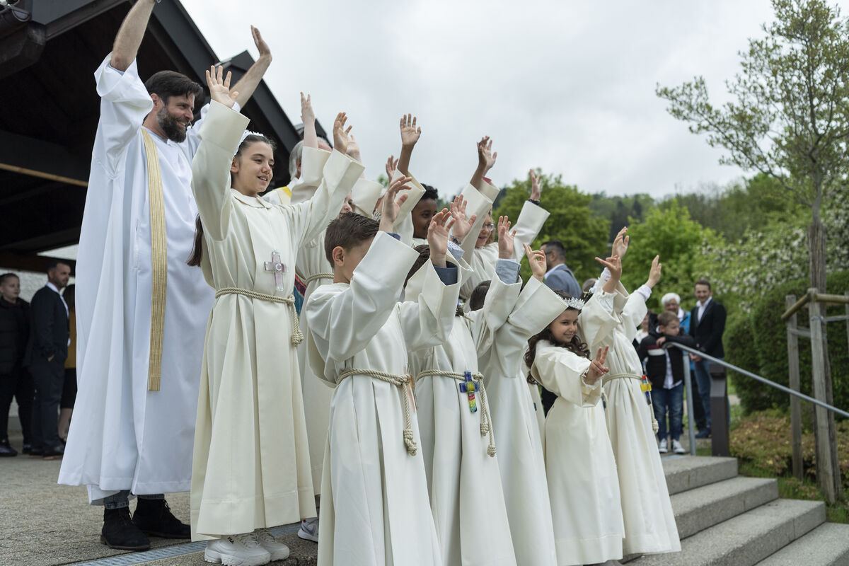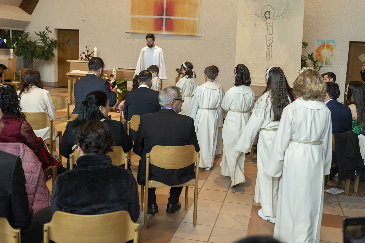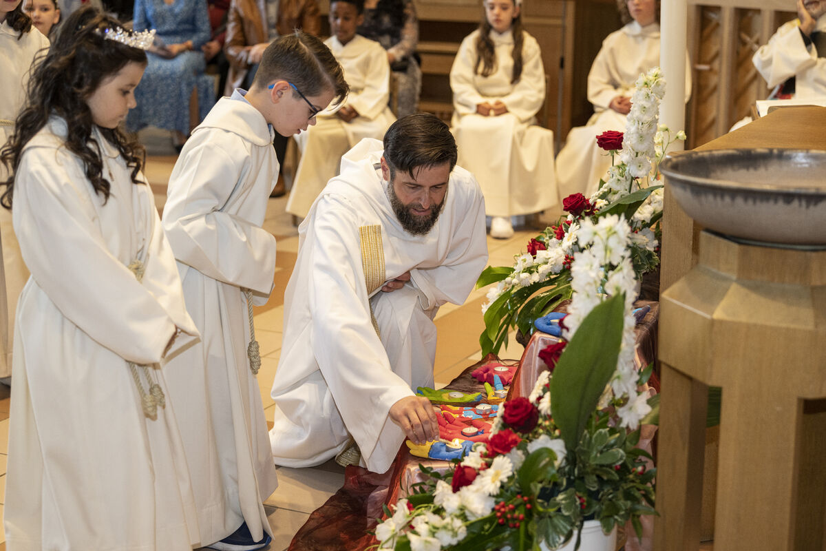 An diesem Sonntag durften 9 Kinder aus unserem Quartier zum ersten Mal die Kommunion empfangen. Es war ein bunter Gottesdienst. Die Erstkommunionkinder begrüssten ihre Gäste in sieben verschiedenen Sprachen. So unterschiedlich Menschen auch sind: unser Glaube bringt sie alle an einem Tisch zusammen - denn es verbinden sich Himmel und Erde. Das durften die Kinder und ihre Familien in diesem Gottesdienst spüren!