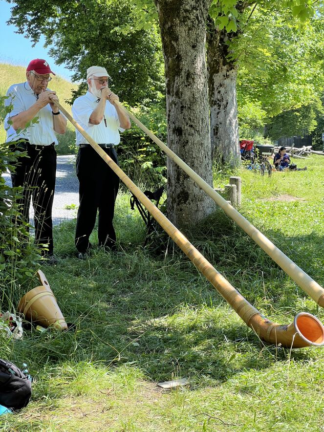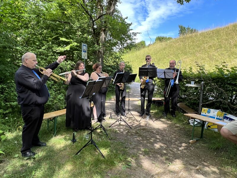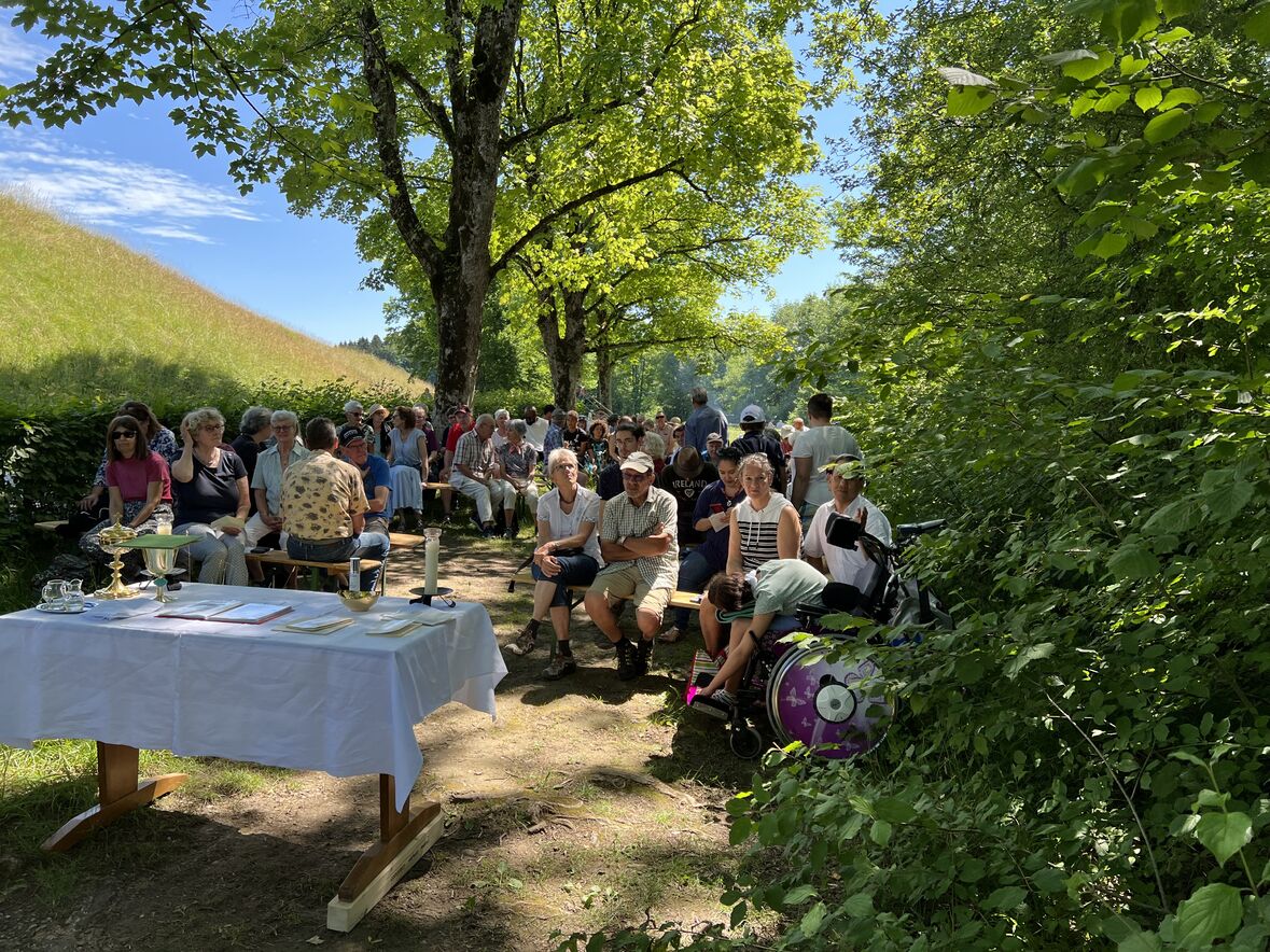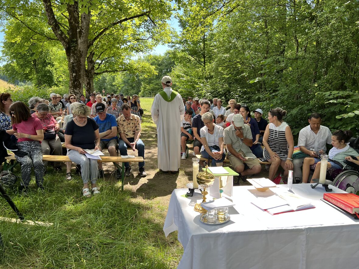 Am Sonntag, 19. Juni konnten Gläubige aus den Pfarreien Bruggen und Winkeln bei schönstem Wetter einen Feldgottesdienst mit musikalischer Gestaltung von Bläsern und Alphörnern feiern.