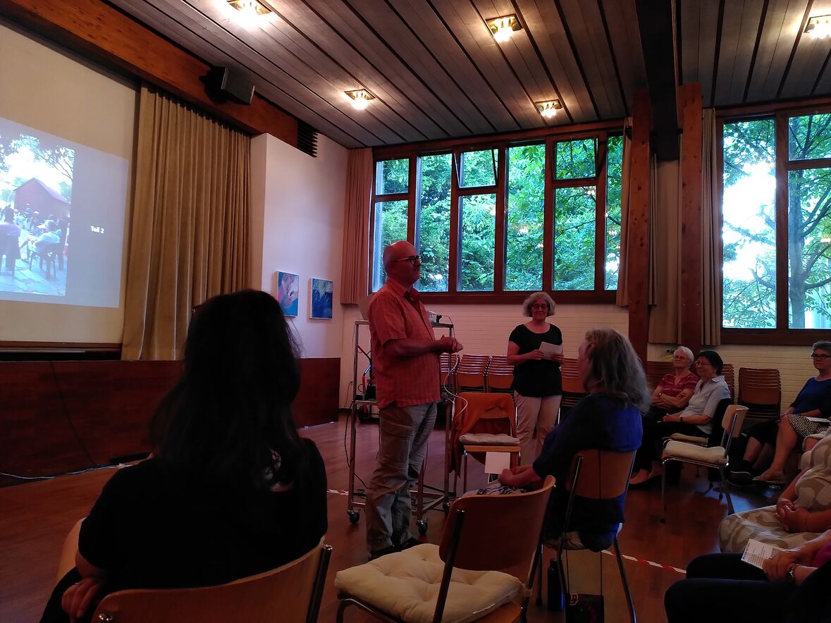 Das Jugendbildungszentrum «Ha Phororo» stand im Zentrum des Erzählabends. Christoph Schönenberger, Gründer und Direktor, und Christoph Balmer-Waser, Mitarbeiter während dreier Jahre, und Jael Filliger, Volontärin, berichteten mit Film, Bildern und eindrücklichen Erlebnissen von diesem besonderen Ort und den Bewohner*innen. Einer der Höhepunkte war die Direktschaltung zu den jungen Erwachsenen nach Ha Phororo ganz im Sinne von «Ha Phororo meets St.Gallen».