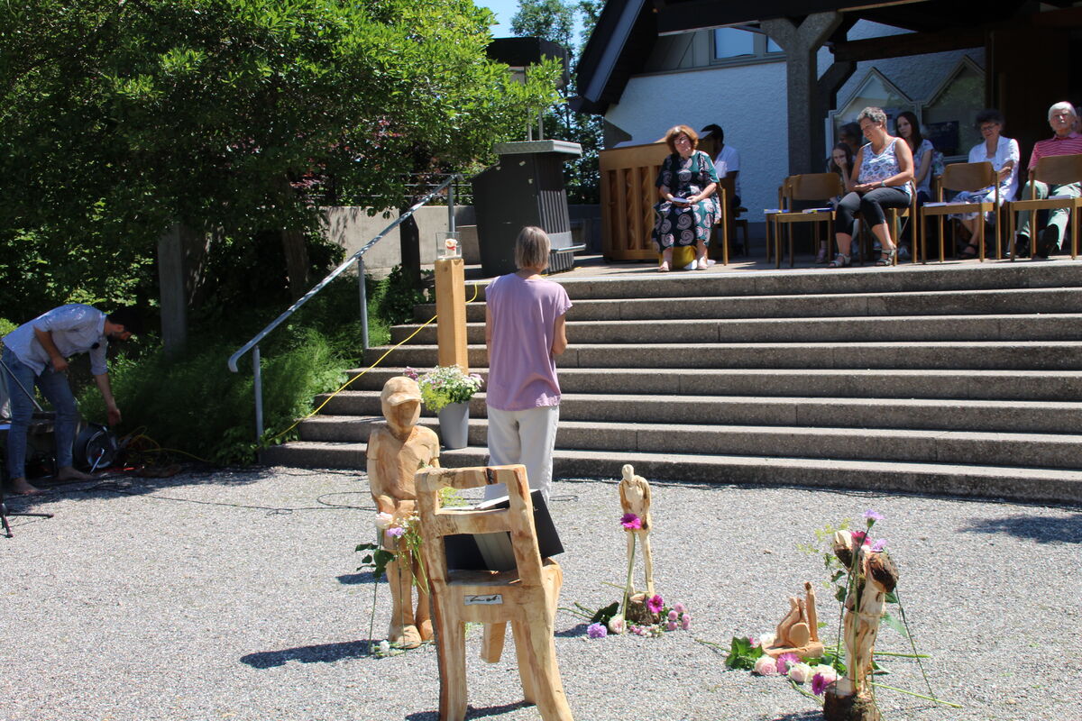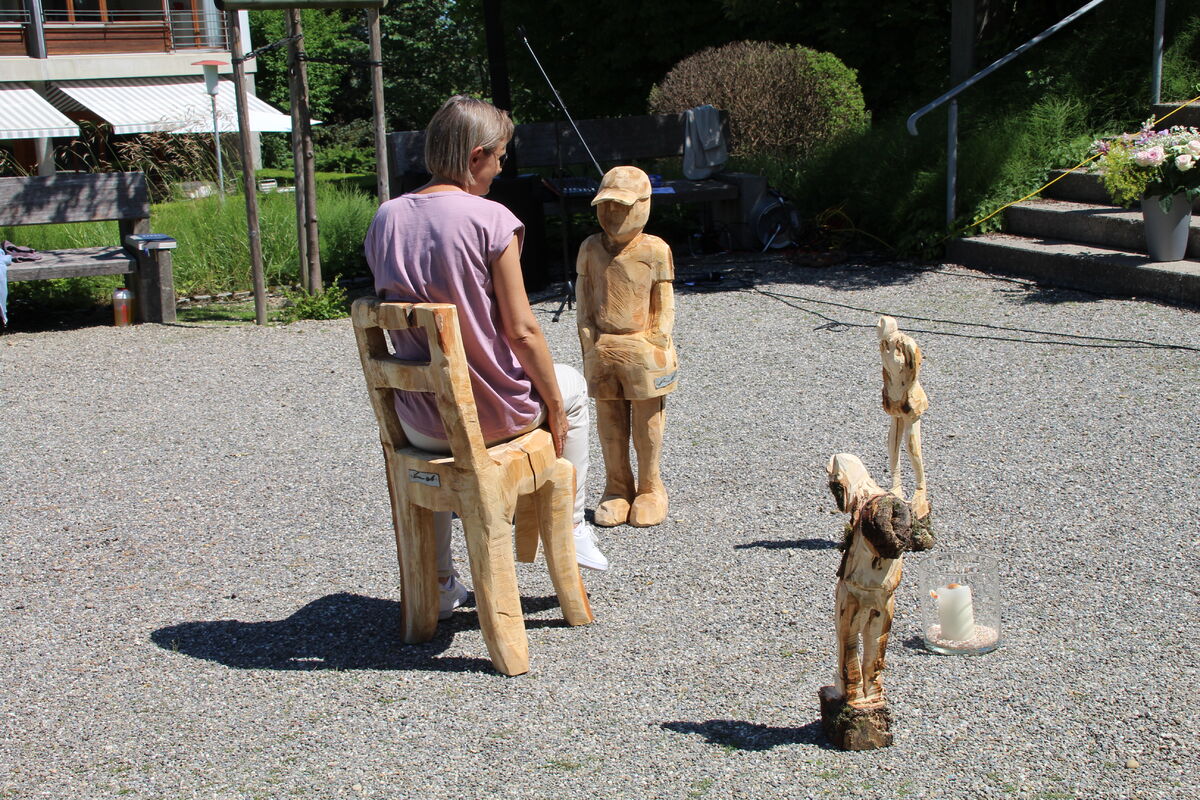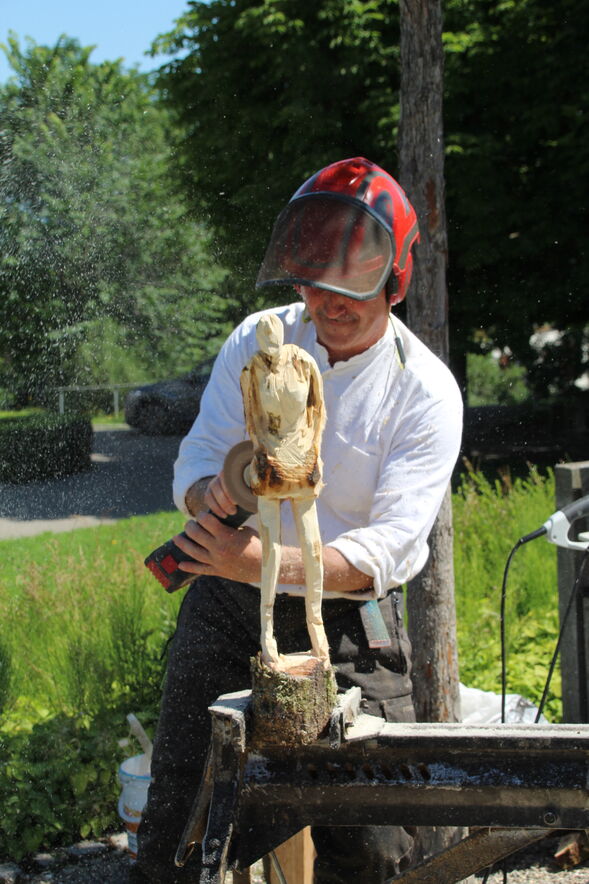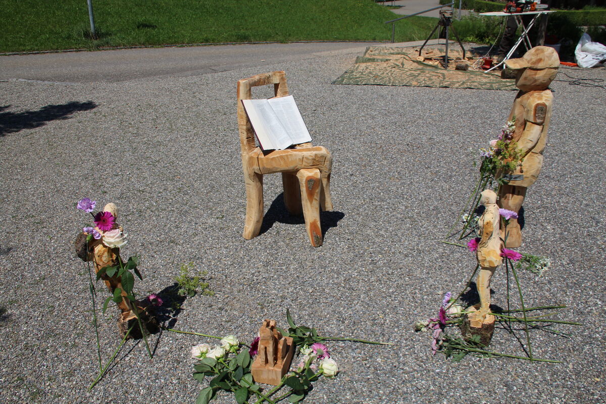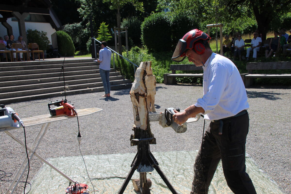 Während unseres Sonntaggottesdienstes gestaltete der Künstler Mario Campigotto mit der Motorsäge Skulturen aus Baumstämmen. Unter dem Motto "Alle dürfen zu Jesus kommen" entstanden eine Holz-Skulptur, die ein Kind darstellt, sowie eine Prostituierte, ein Schurke und ein Kranker. Jesus, der für alle Menschen offen war, symbolisierte eine Stuhl-Skulptur. Am Schluss des Gottesdienstes wurden die Figuren versteigert und der Erlös kam der Kollekte für die Migrations-Chartazugute. Wir danken Mario von Herzen für die Idee und Initiative zu diesem besonderen Gottesdienst-Format.
