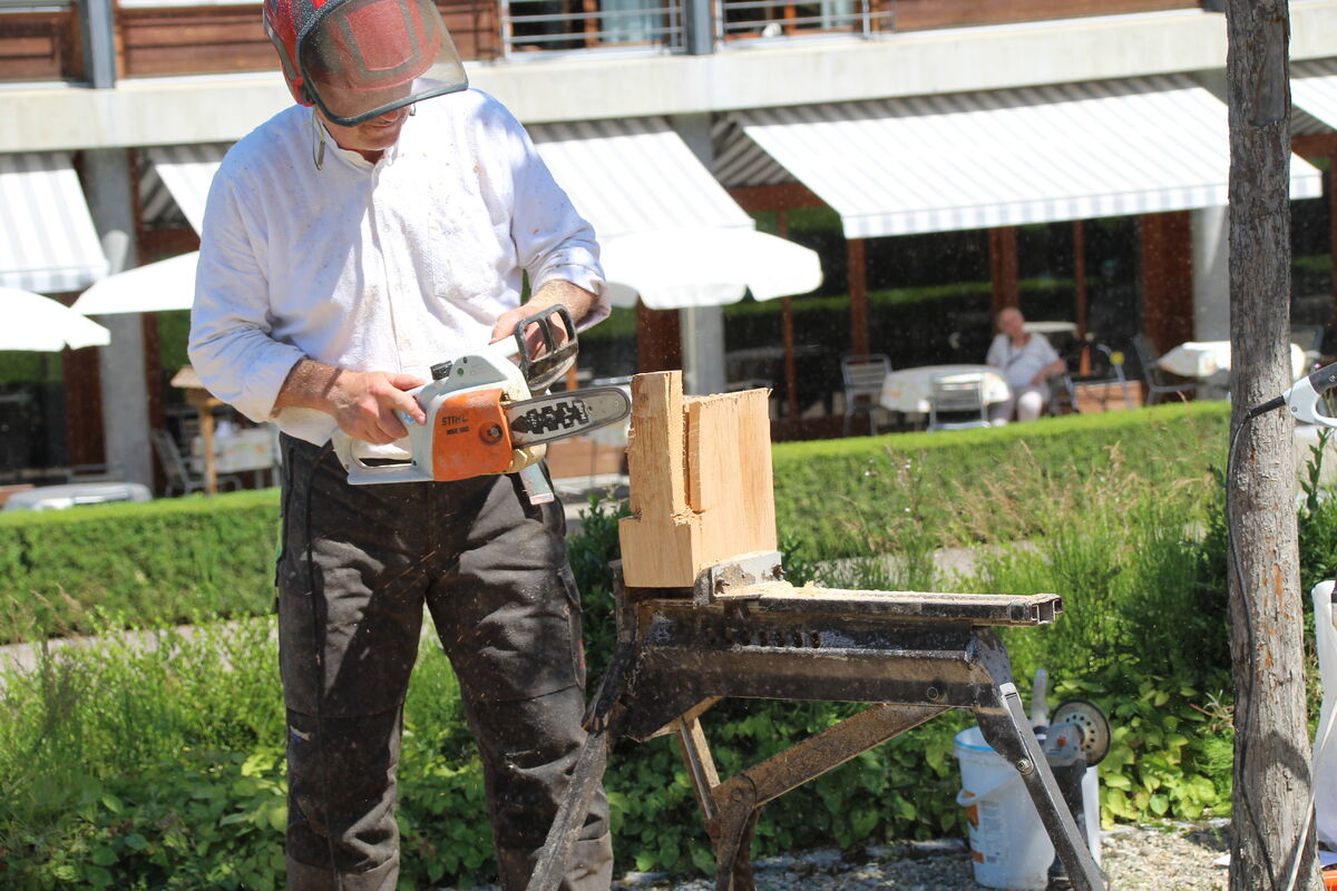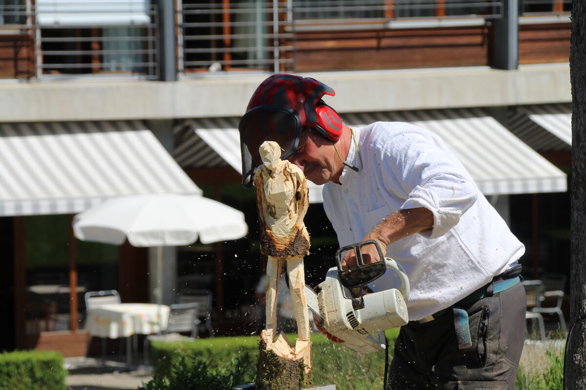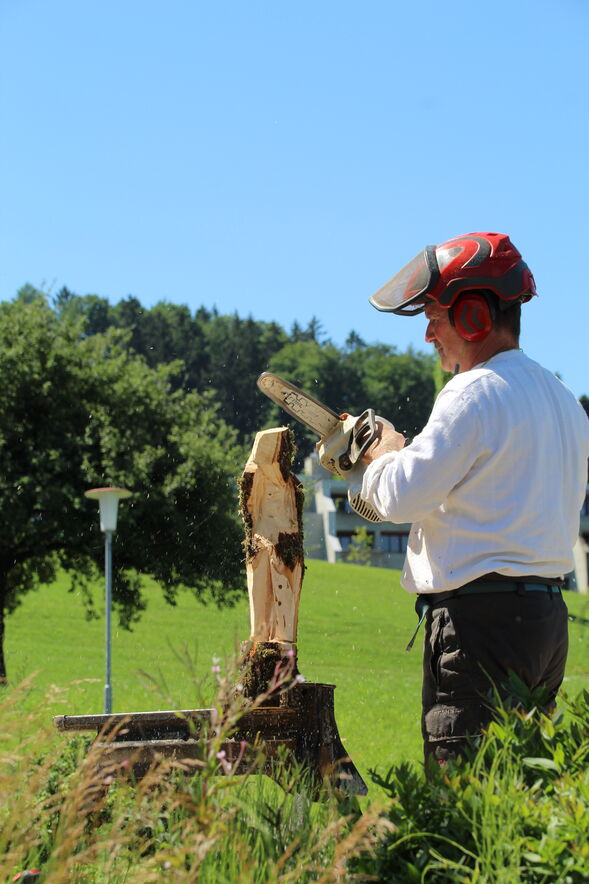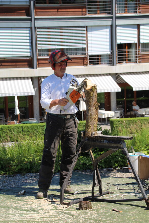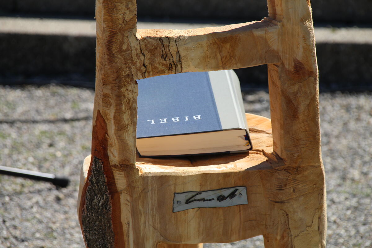 Während unseres Sonntaggottesdienstes gestaltete der Künstler Mario Campigotto mit der Motorsäge Skulturen aus Baumstämmen. Unter dem Motto "Alle dürfen zu Jesus kommen" entstanden eine Holz-Skulptur, die ein Kind darstellt, sowie eine Prostituierte, ein Schurke und ein Kranker. Jesus, der für alle Menschen offen war, symbolisierte eine Stuhl-Skulptur. Am Schluss des Gottesdienstes wurden die Figuren versteigert und der Erlös kam der Kollekte für die Migrations-Chartazugute. Wir danken Mario von Herzen für die Idee und Initiative zu diesem besonderen Gottesdienst-Format.