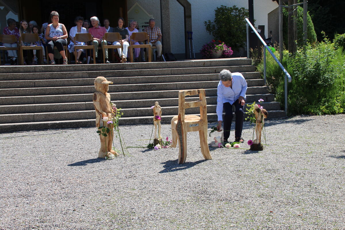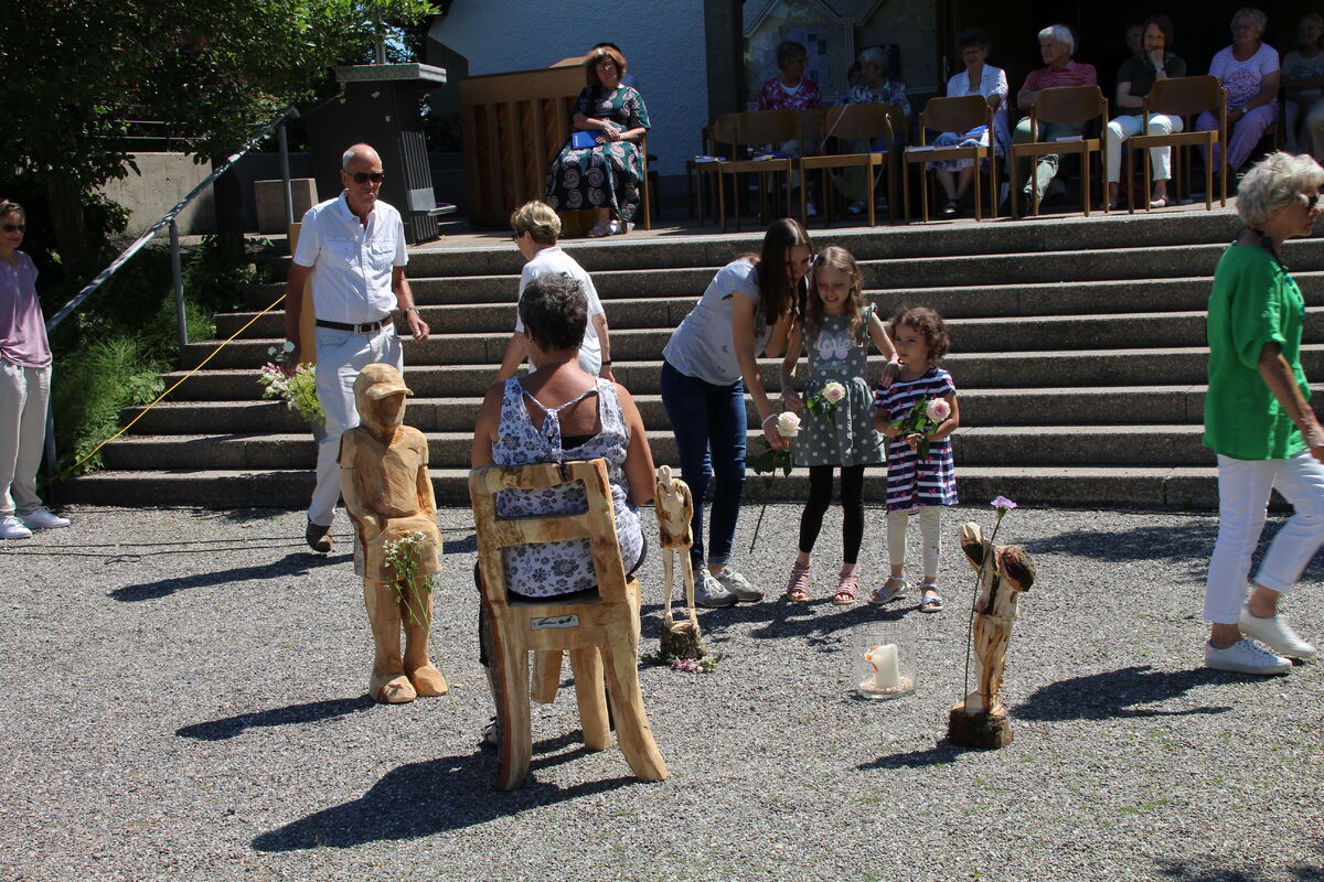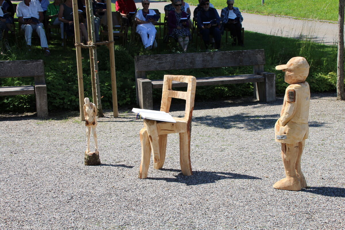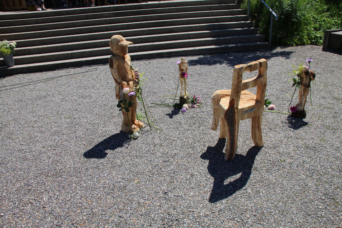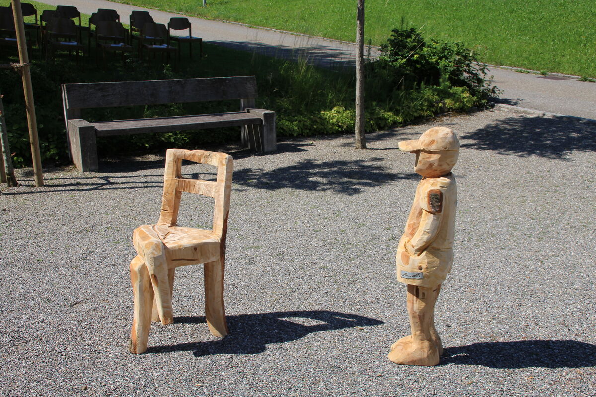 Während unseres Sonntaggottesdienstes gestaltete der Künstler Mario Campigotto mit der Motorsäge Skulturen aus Baumstämmen. Unter dem Motto "Alle dürfen zu Jesus kommen" entstanden eine Holz-Skulptur, die ein Kind darstellt, sowie eine Prostituierte, ein Schurke und ein Kranker. Jesus, der für alle Menschen offen war, symbolisierte eine Stuhl-Skulptur. Am Schluss des Gottesdienstes wurden die Figuren versteigert und der Erlös kam der Kollekte für die Migrations-Chartazugute. Wir danken Mario von Herzen für die Idee und Initiative zu diesem besonderen Gottesdienst-Format.