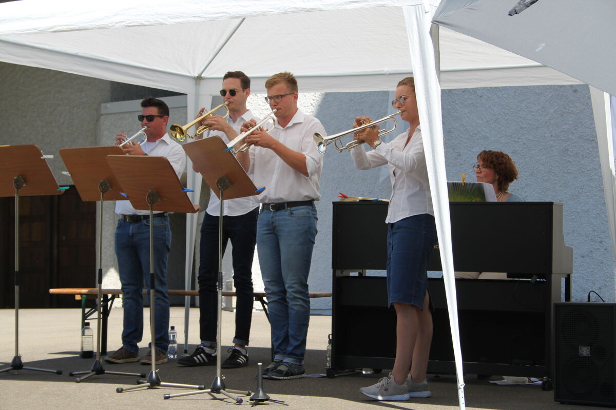 Das Trompeten-Quartett mit Chiara Näf, Gallus Kauffmann, Raphael Locher und Manuel Vierbauch spielten festliche Stücke.