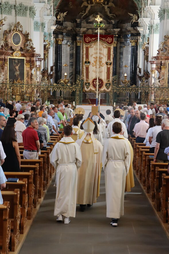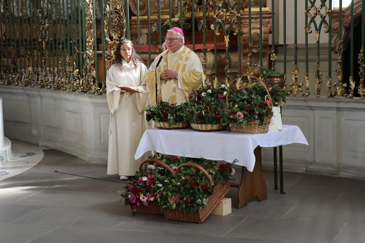 Ein feierliches Pontifikalamt zeichnete den Festtag Maria Himmelfahrt aus, das Patrozinium der Kathedrale. Gemäss der Tradition wurden Kräuter und Blumen gesegnet, welche freiwillige Helferinnen am Vortag zu Sträusschen gebunden hatten. Dieses Jahr musizierten DomChor, Solisten und Collegium Instrumentale die «Spaur-Messe» von