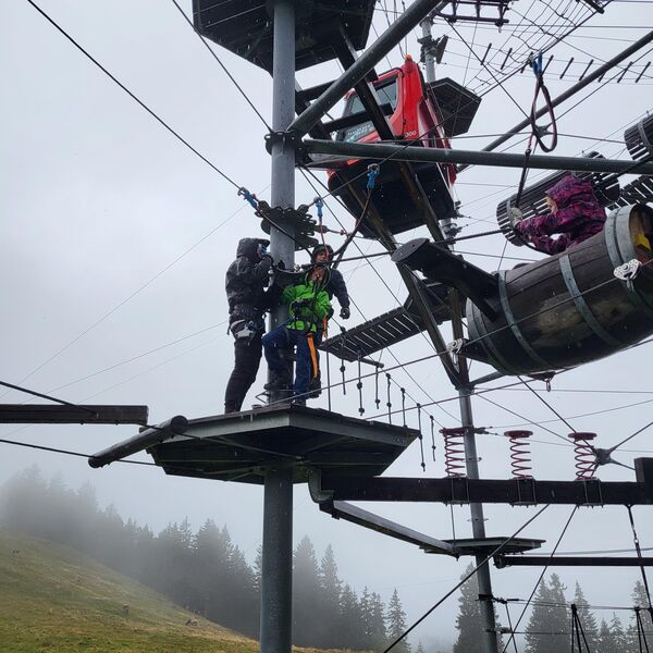 Später am Tag hat die Schar auch noch die Rodelbahn FLOOMZER bezwungen, bevor es bei guter Stimmung wieder zurück ins Tal und auf den Heimweg ging. Vom "Werwölfeln" bis zum "Bulldoggen" wurde in den Wartezeiten, im Zug und auch auf dem Weg lange und viel gespielt und gelacht.