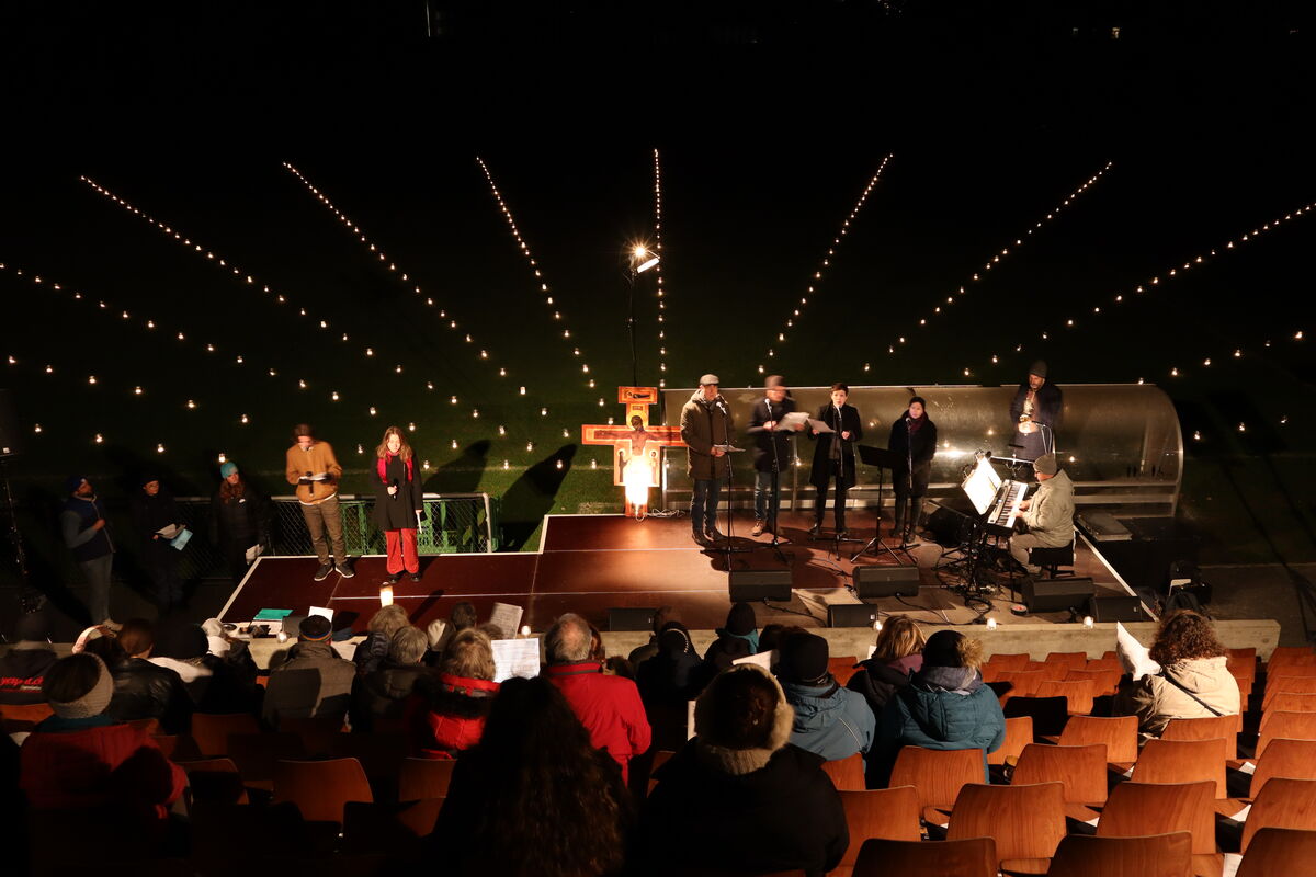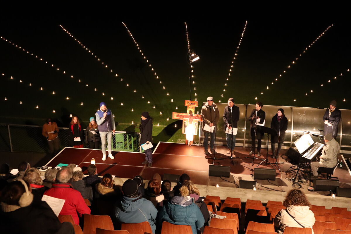 Die Nacht der Lichter St. Gallen fand dieses Jahr bereits zum zweiten Mal auch im altehrwürdigen Stadion Espenmoos – dem ältesten Fussballstadion der Schweiz (1910) - statt. Bei eisig klarem Winterwetter, umgeben von Licht - oben der Sternenhimmel, rundherum die Kerzen -, feierte eine beschauliche Gruppe die Taizé-Feier als besinnliche Einstimmung in die Adventszeit.