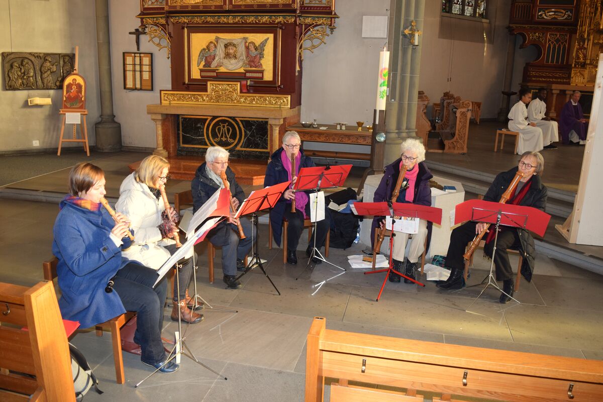 Das Flötensemble St.Otmar-Riethüsli gestaltete den Gottesdienst musikalisch mit. Die bei der "Adventsbinderei" gebastelten Adventskränze wurden im Gottesdienst gesegnet.
