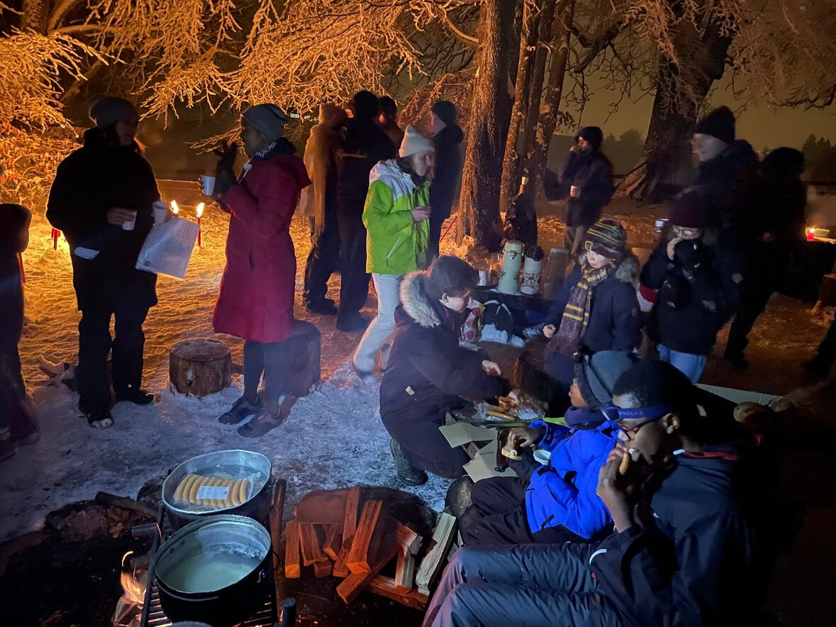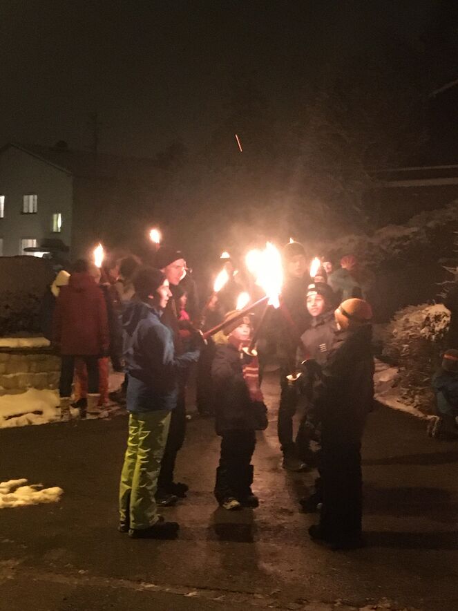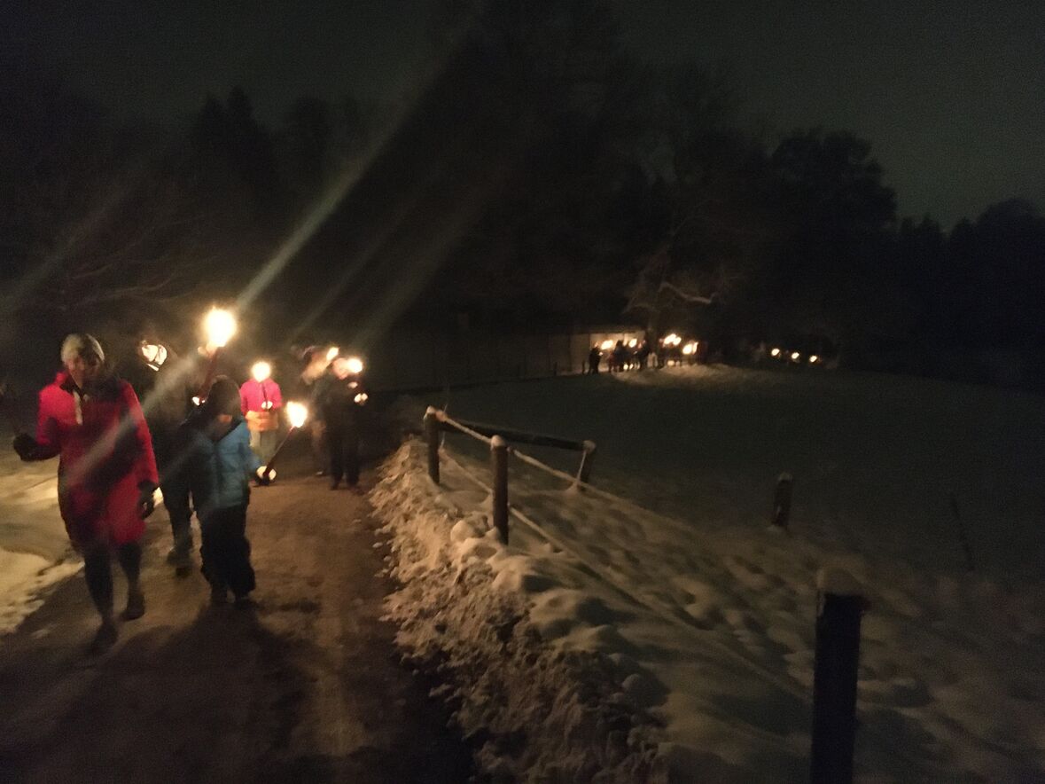 Der frische Schnee, das Licht der Fackeln, das Knistern des Feuers und die Nachtstille des Waldes.