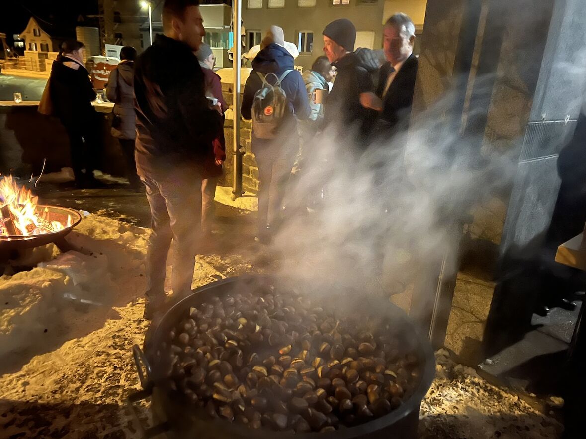 Bei schönsten Klängen der Musikgesellschaft St.Georgen genoss man den Sonntagabend und stimmte sich auf Weihnachten ein. Bei einem warmen Glühmost oder Pund mit ein paar leckeren Marroni verweilte man ein wenig am Feuer.