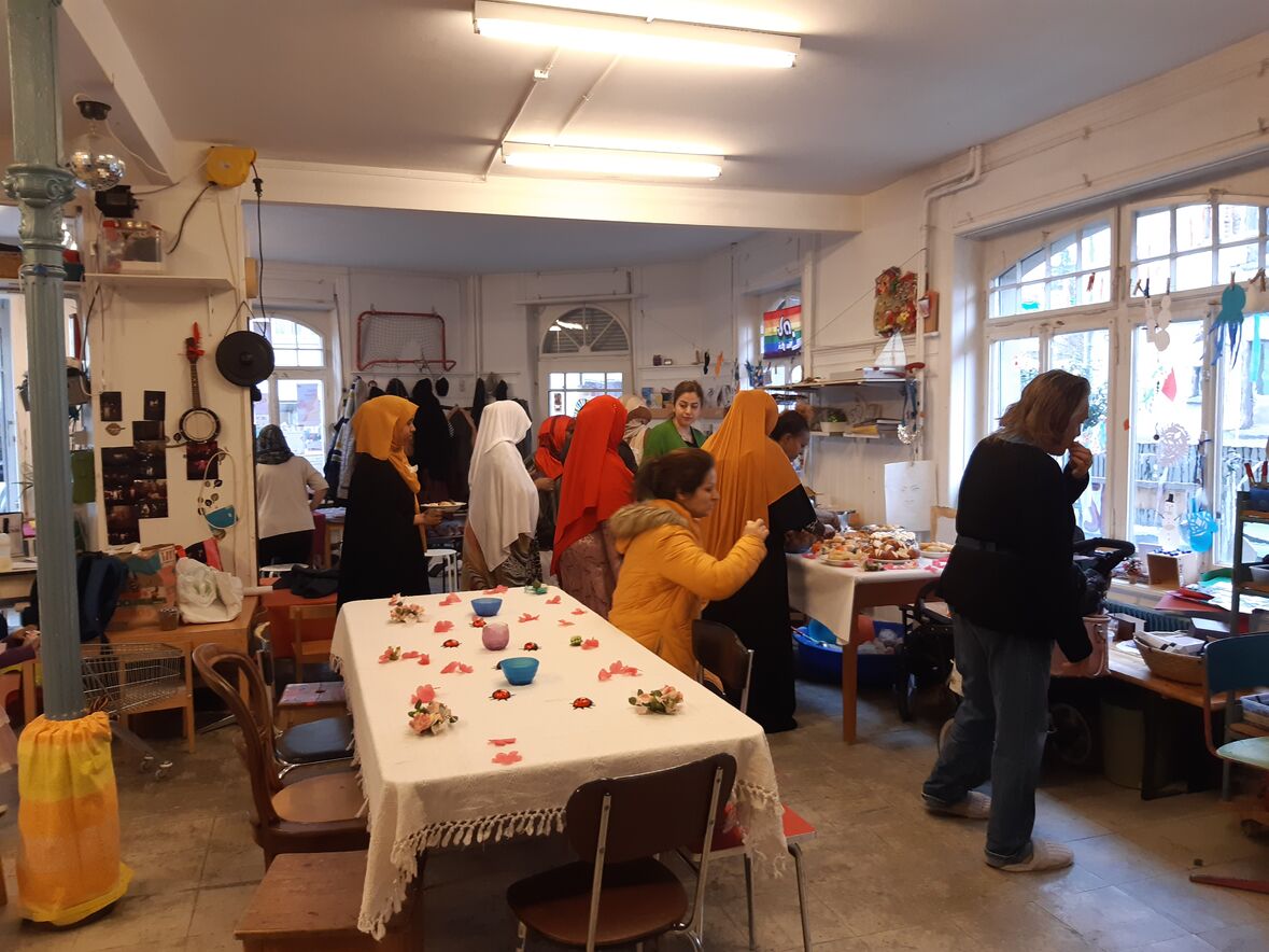 Von Beginn an stand die Frage im Zentrum, was den Frauen Freude macht und wie sie ihre eigenen Fähigkeiten und Fertigkeiten einbringen können. Bis heute leitet uns diese Frage auch bei der Wahl der Aktivitäten: kochen, backen, essen, handarbeiten, reden, Geschichten hören, tanzen u.v.m.