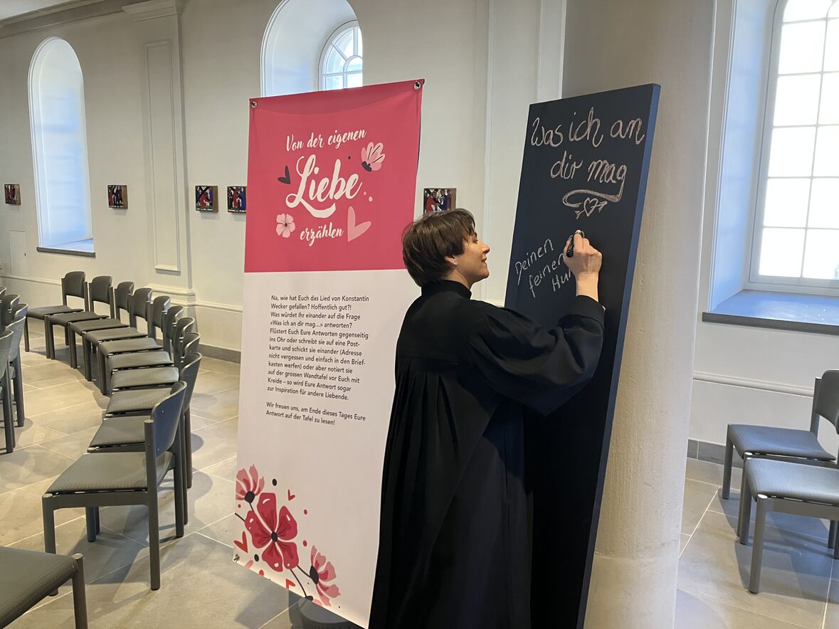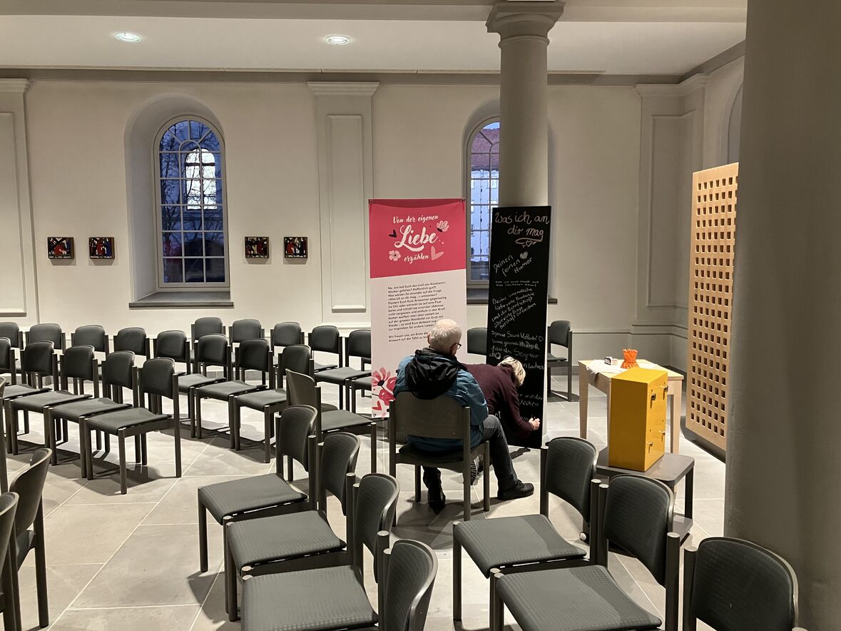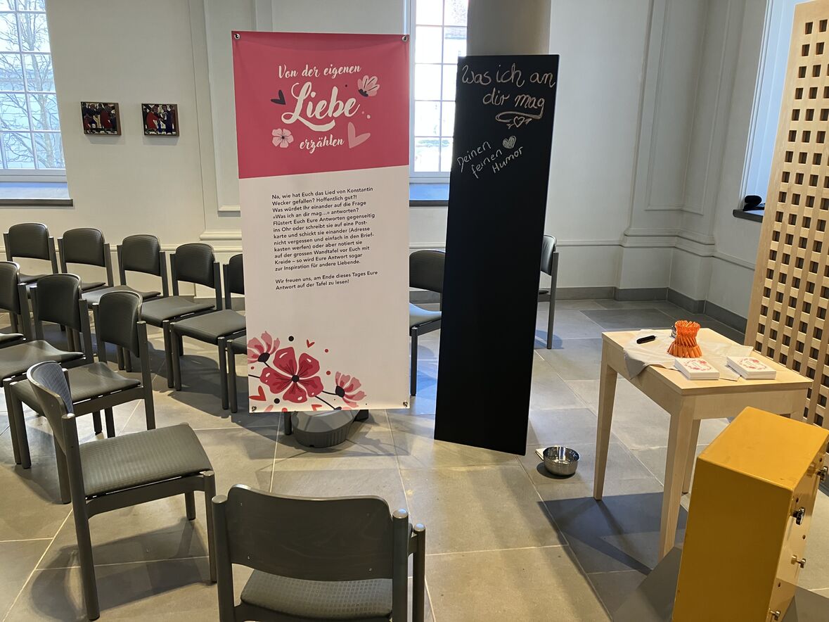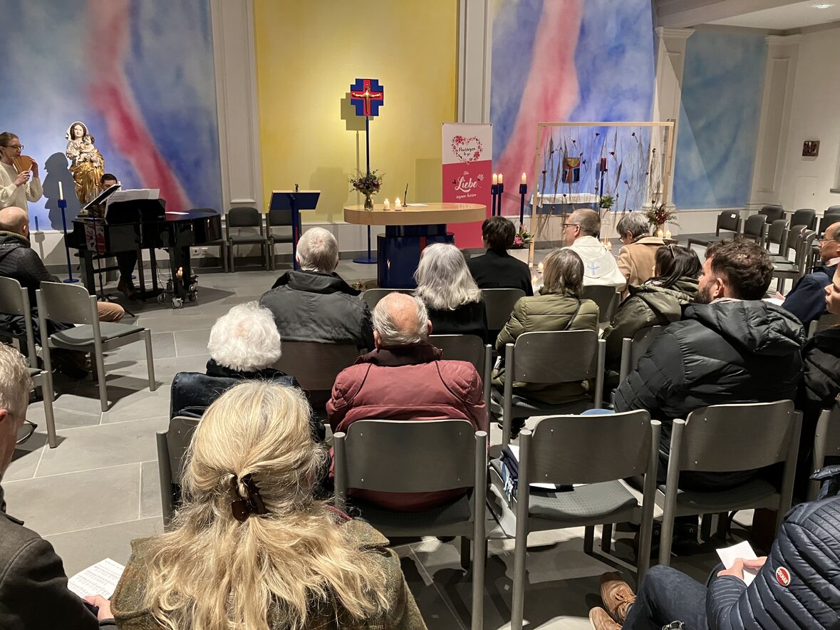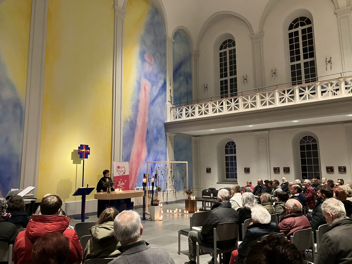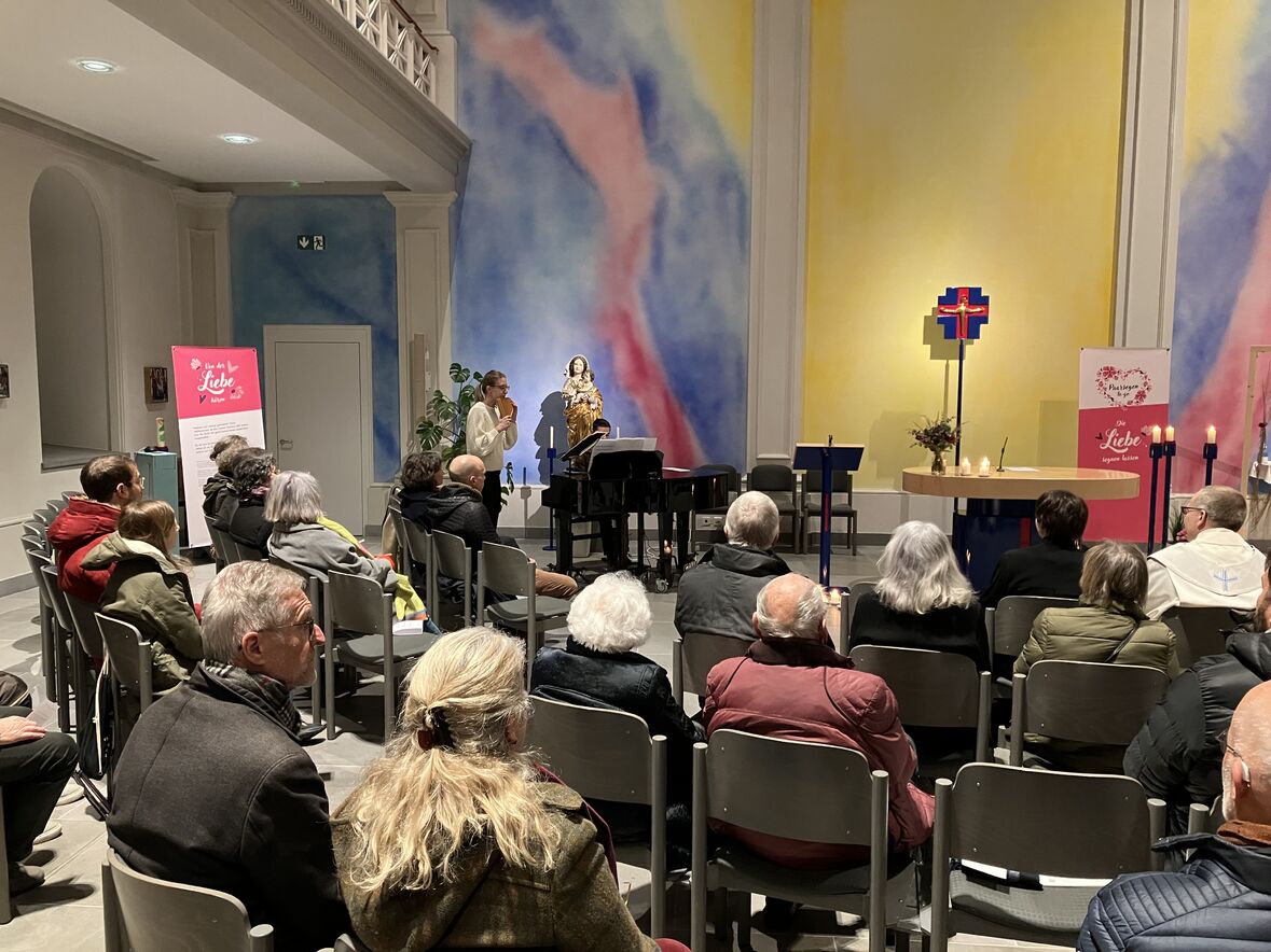 Die Segensfeier um 19 Uhr mit Musik von Nadine & Dario Canal und liebevollen Gedanken hat den Tag der Liebenden abgerundet. Christiane Schubert und Gregor Scherzinger haben dabei von ihrem Alltag als Paar erzählt und vor allem auch von ihrem goldigen Liebesstaub, der manchmal vom Alltagsstaub verdeckt wird. Wer wollte konnte sich als Paar zum Abschluss der Feier segnen lassen.