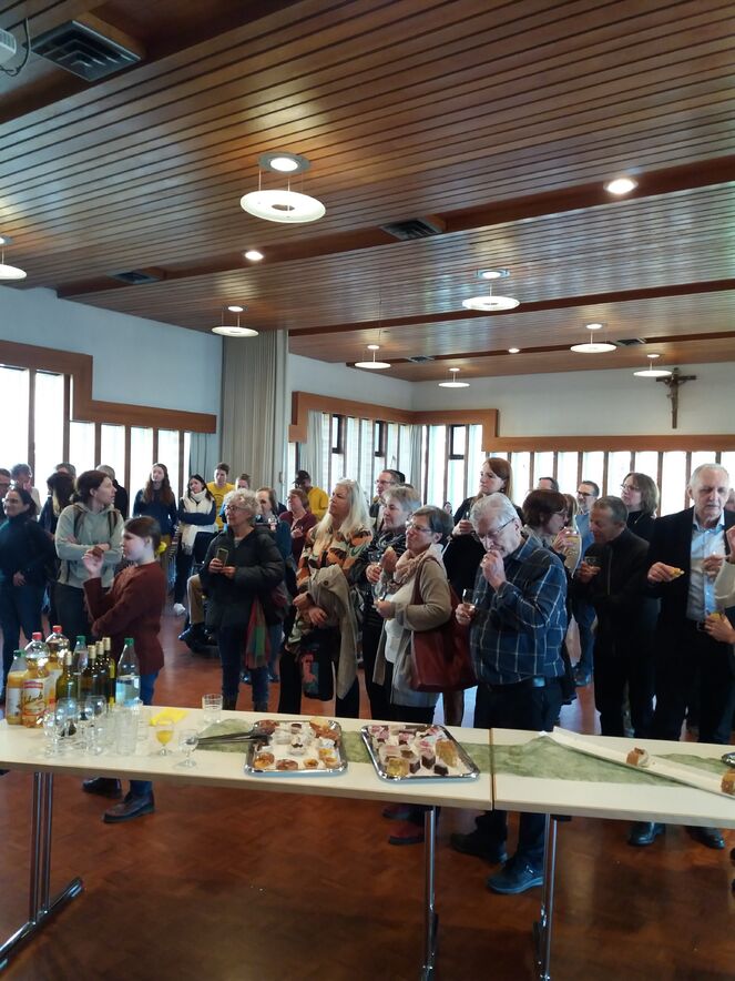 Beim anschliessenden Apero gab es viele angeregte Gespräche und Blauring und Jungwacht forderten Urszula Pfister beim Montagsmaler heraus.