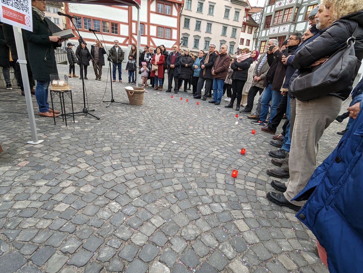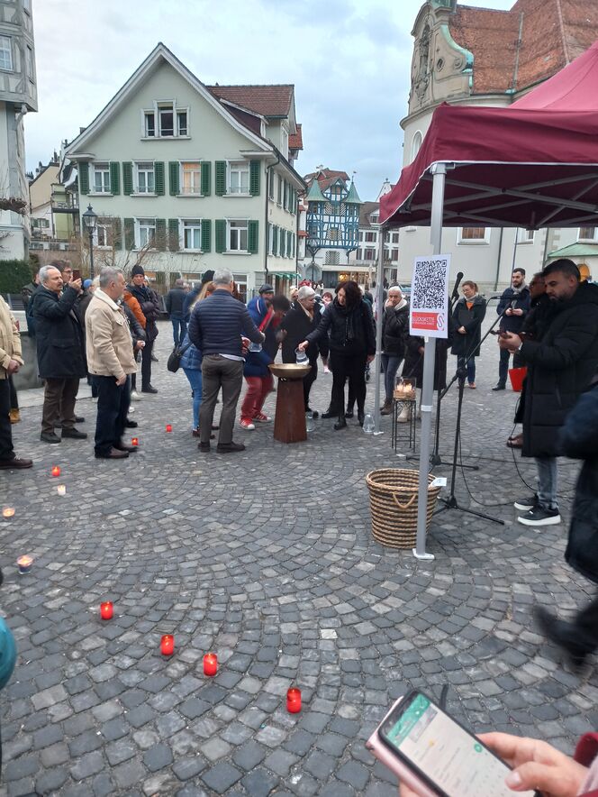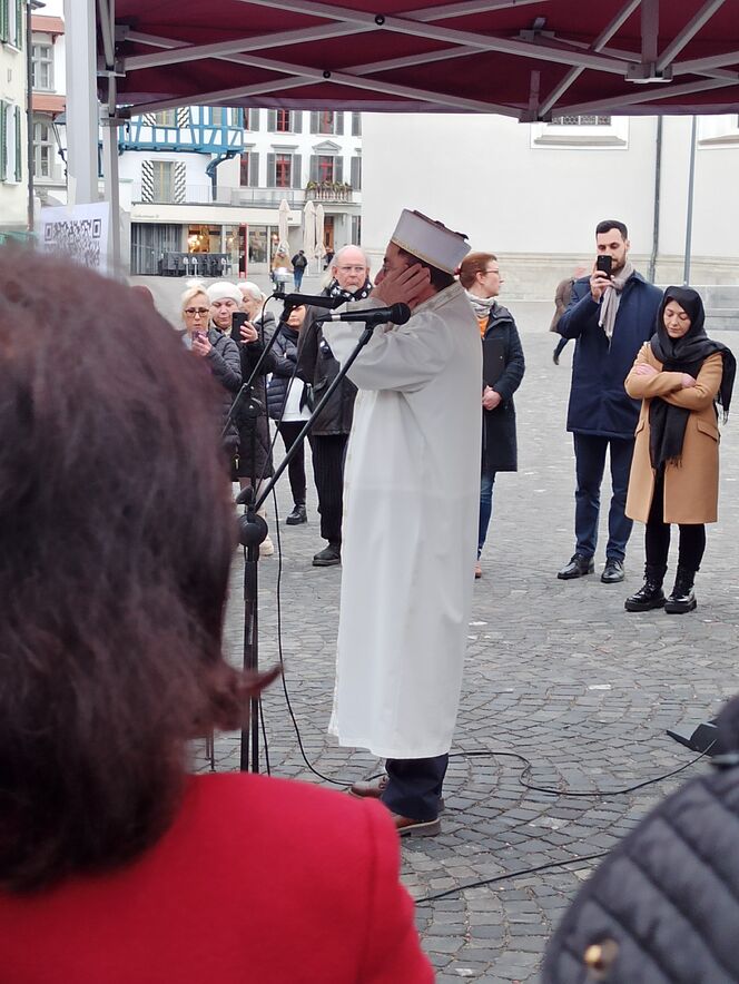 Das unermessliche Leid, das das Erdbeben in Teilen Syriens und der Türkei ausgelöst hat, lässt viele ratlos und sprachlos zurück. Menschen aus den christlichen Kirchen, muslimischen Verbänden, alevitischen Vereinen und anderen Religionsgemeinschaften haben am Freitagabend, 24. Februar, deswegen ein gemeinsames Zeichen der Mitmenschlichkeit gesetzt und zu einem öffentlichen Gedenkanlass auf den Gallusplatz eingeladen.