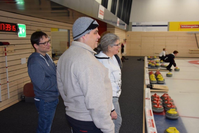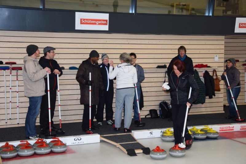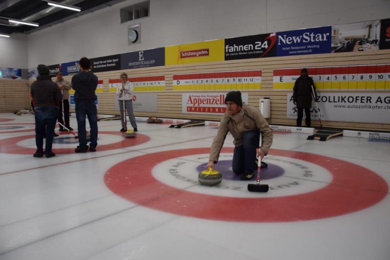 Einmal im Jahr verbringen die Seelsorgenden der Pfarreien Dom, St.Georgen, Riethüsli und St.Otmar einen geselligen Abend. Dieses Jahr traffen sie sich in der Curlinghalle St.Gallen und bewährten sich auf dem Glatteis.