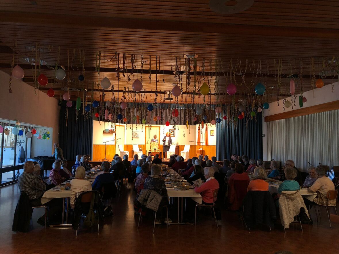 Im fasnächtlich dekorierten Pfarreiheimsaal fand sich das Publikum am Dienstagnachmittag ein.