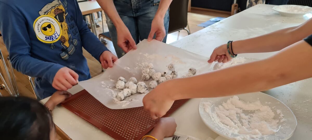 Die Kirche Kunterbunt im März stand unter dem Thema Väter. Alle Ateliers haben Papas gestaltet. Es wurden Riesen-Seifenblasen gemacht, gespielt, Vätergeschichten erzählt, gebacken, gekocht, gelacht, Vätergesichter gebastelt und in der Feierzeit gebetet und gesungen. Mit einem feinen gemeinsamen Mittagessen wurde der Vormittag abgeschlossen.